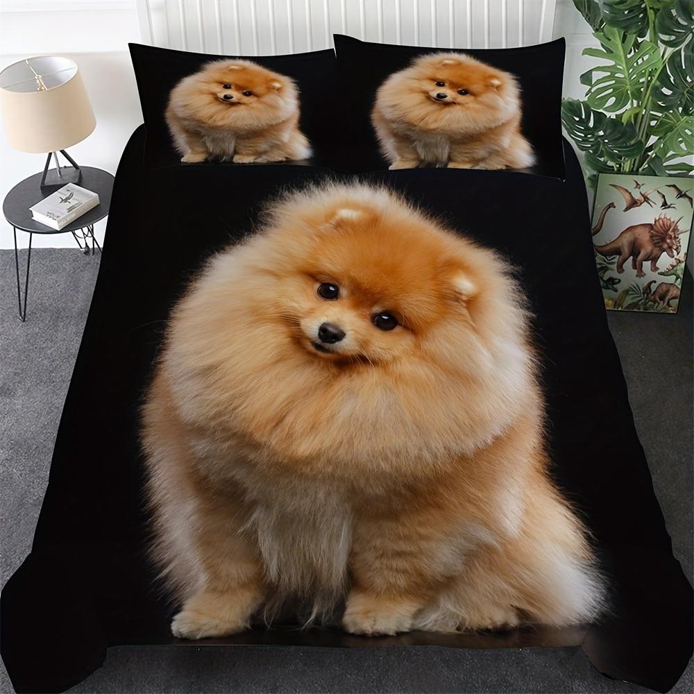Комплект пододеяльника (1 пододеяльник+2 наволочки) Милый комплект постельного белья с принтом шпица для спальни и гостевой комнаты