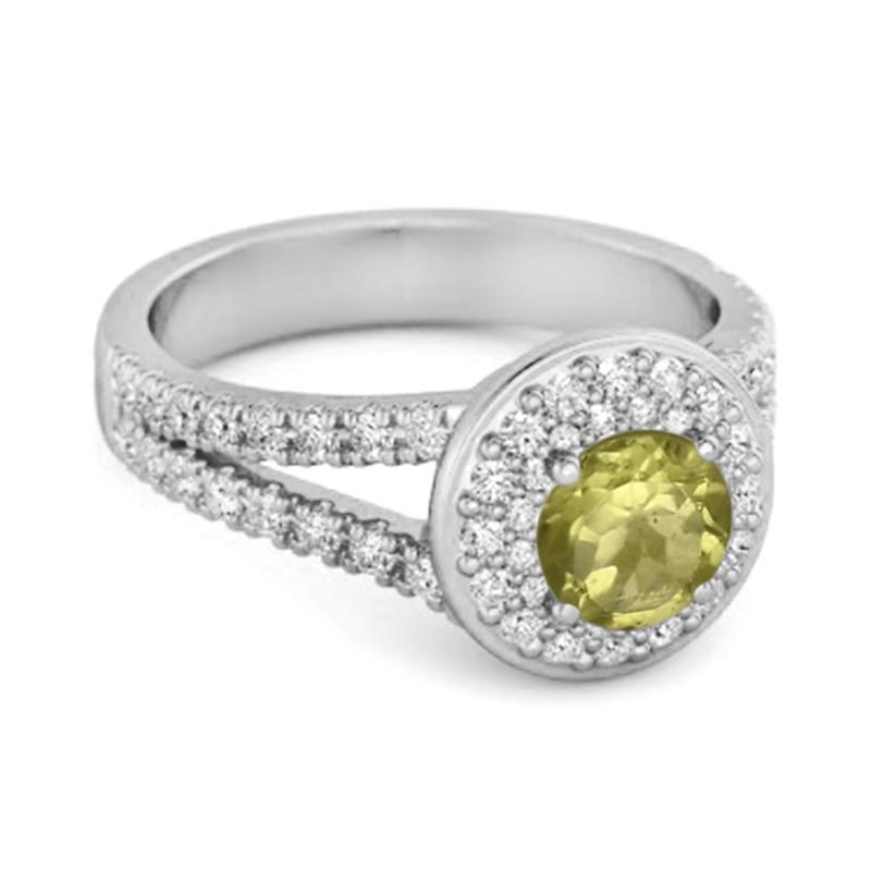 925 sterling silver double halo ring with 1.45 ct total featuring a 6mm round peridot. A vibrant and elegant design ideal for August birthdays or gifting.