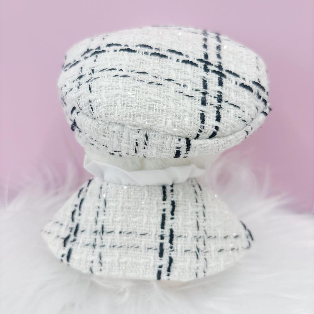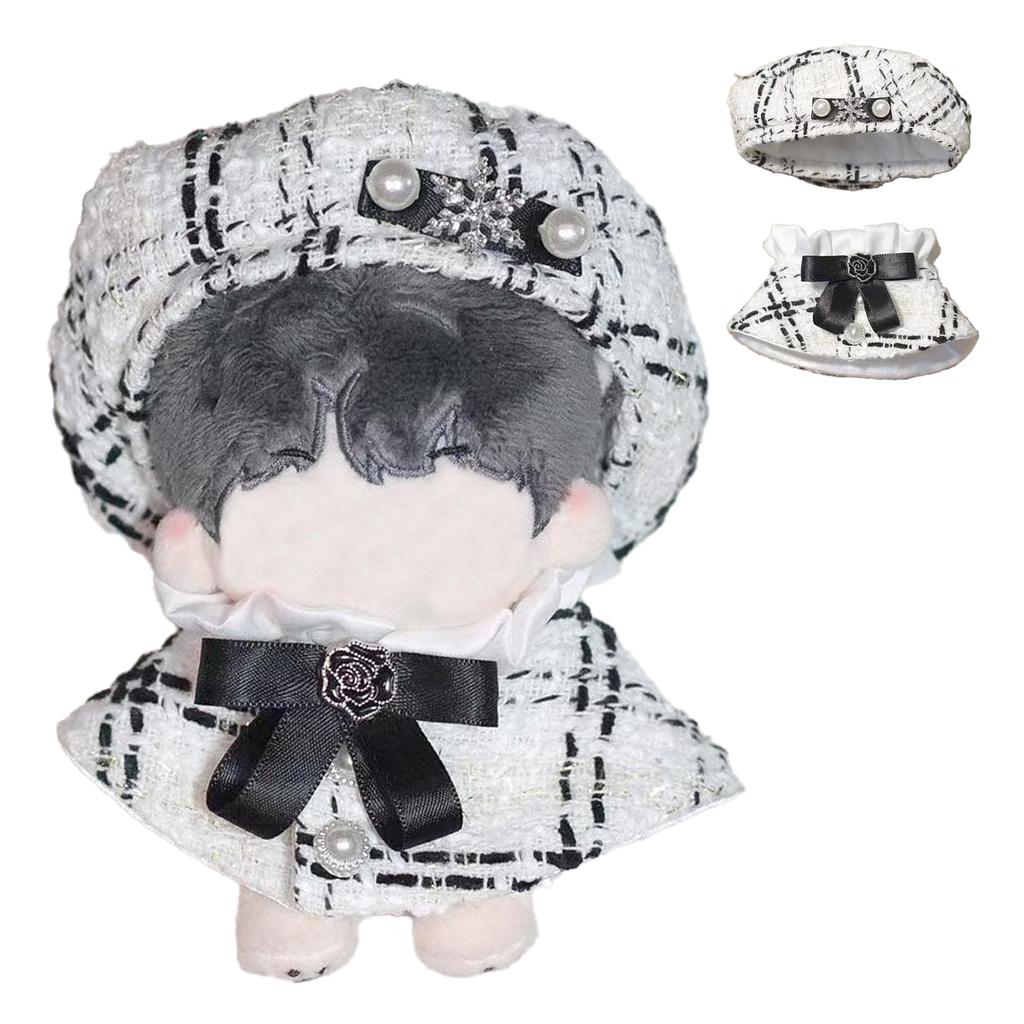 Твидовый Берет и Накидка для Кукол 10 см, Белый, Пончо, Шляпа, Накидка и Шарф, Клетка [Б/У]