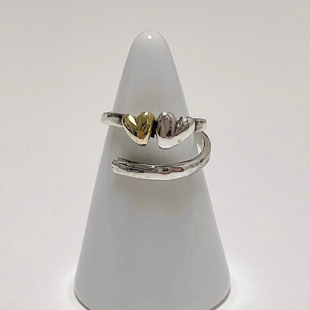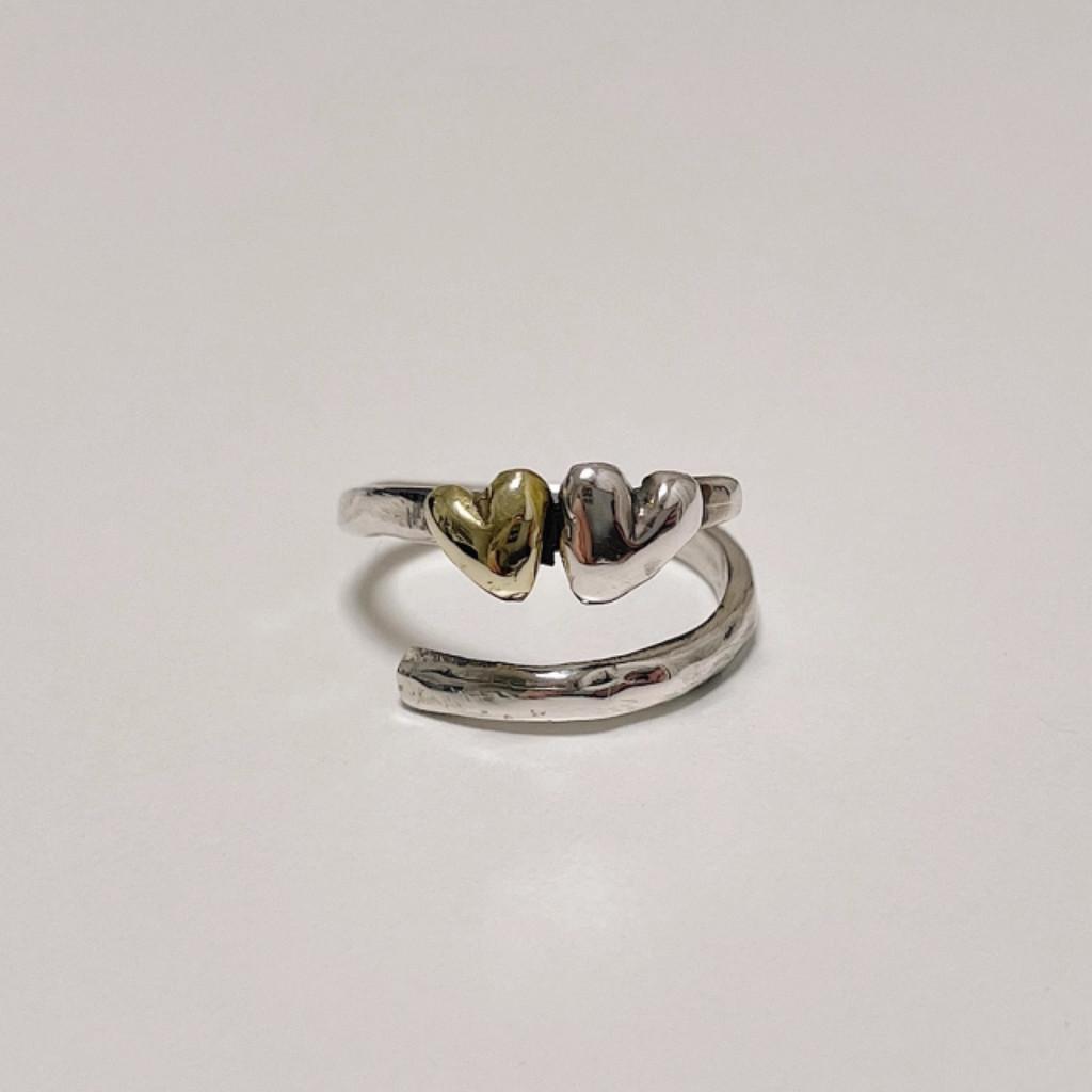 Korean Imported Vintage Handmade Textured Two Heart Adjustable Ring For Women
