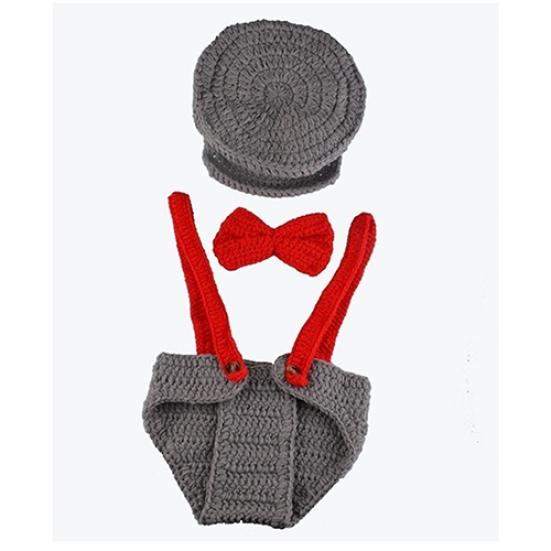 Вязаная шапочка для новорожденной девочки + Милый галстук-бабочка для мальчика + Фотография комбинезона
