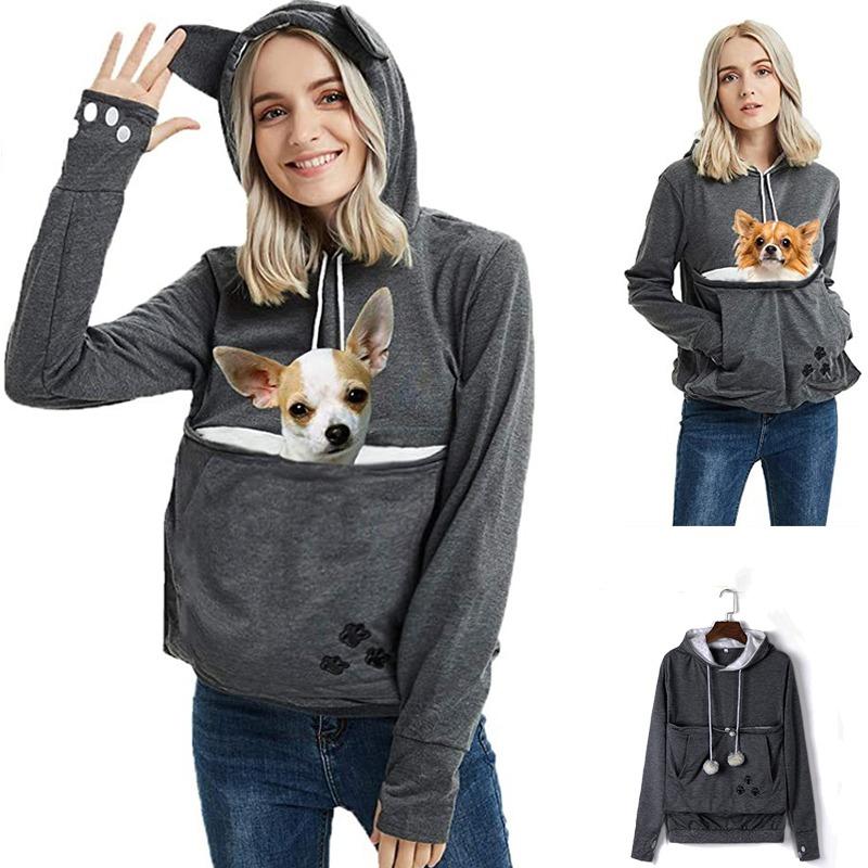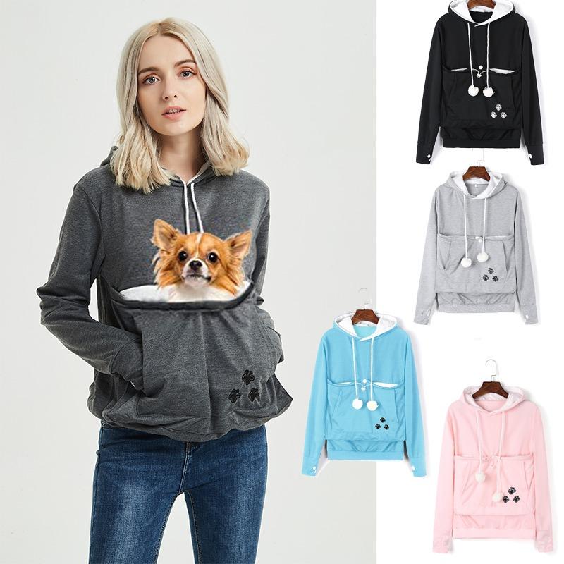 Женские толстовки с большой сумкой, женский держатель для домашних животных, осенний модный пуловер, сумка с кошачьими ушками