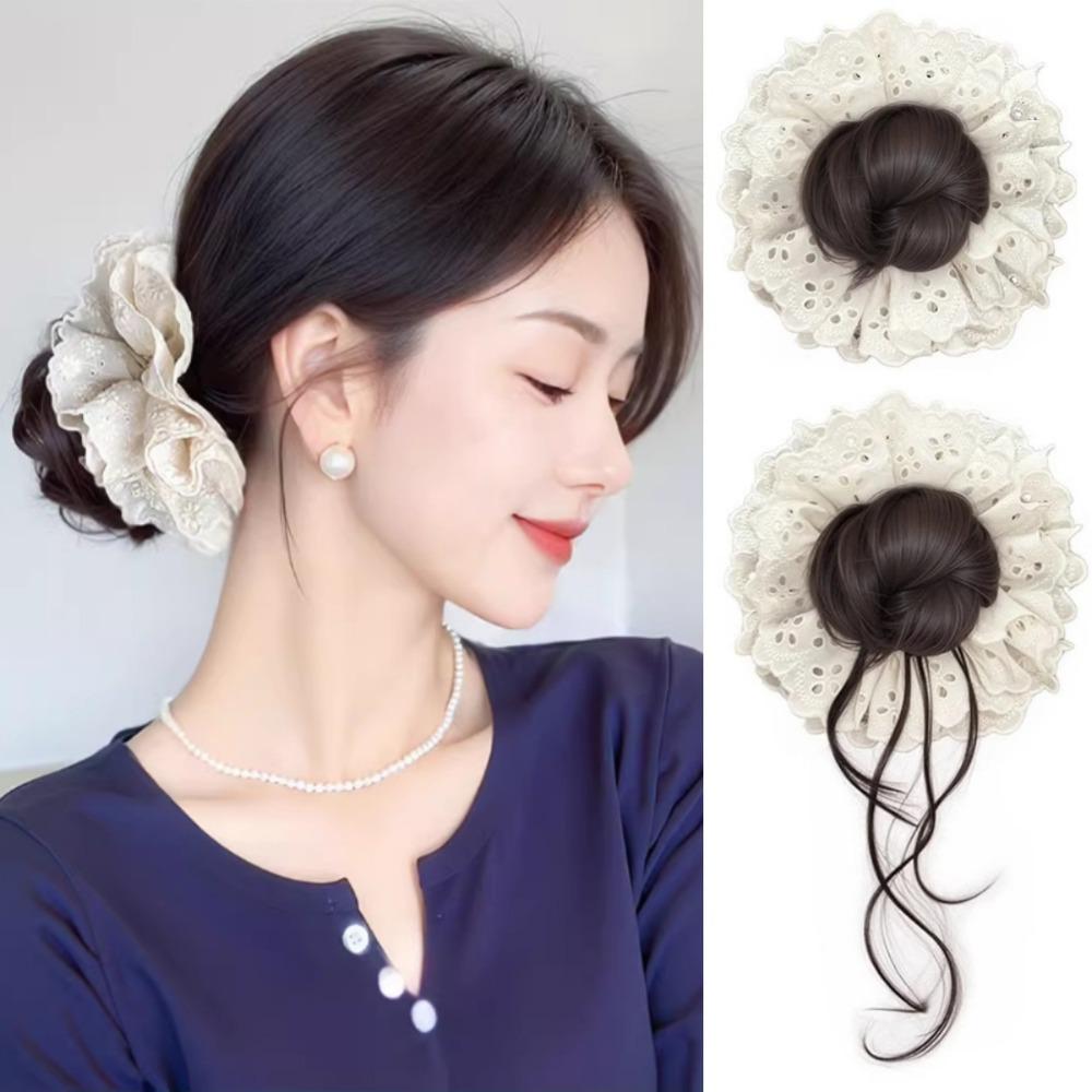 Кружевные резинки для волос, держатели для хвостика, артефакт для волос, накладные пряди, пучок с цветком, парик для головы, женские