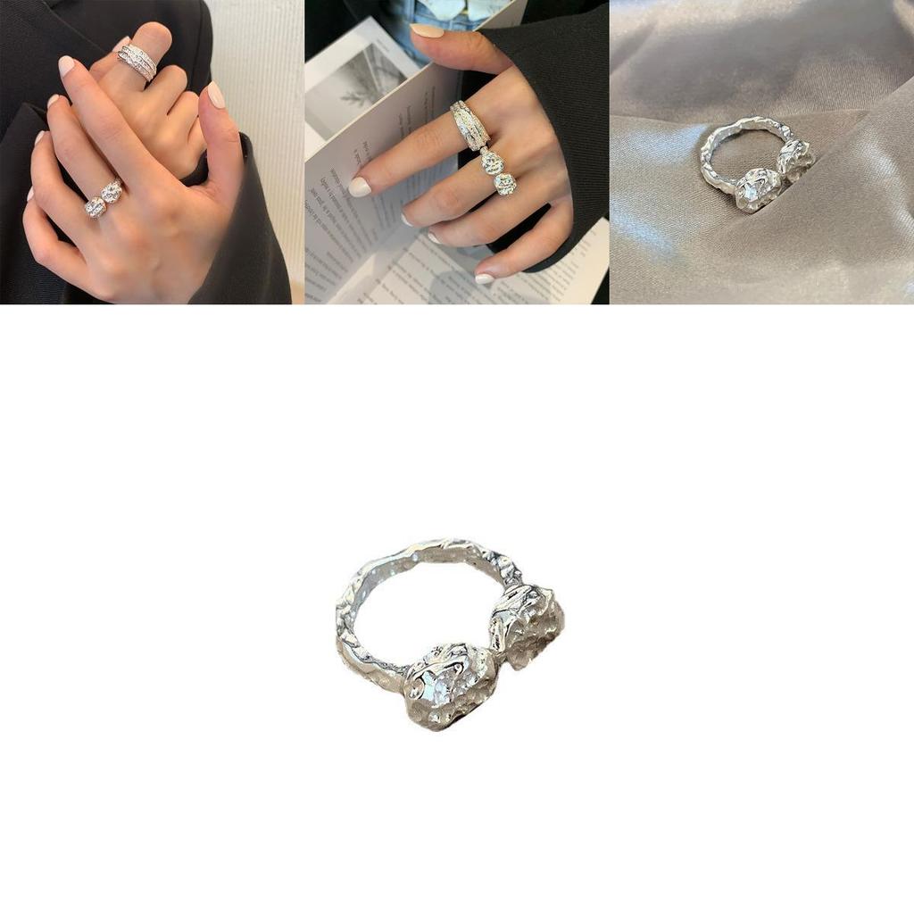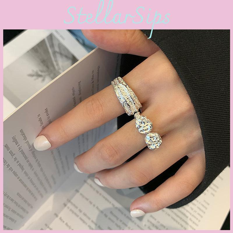 Стильное регулируемое открытое кольцо в корейском стиле с уникальным геометрическим дизайном из чистого серебра 925 пробы