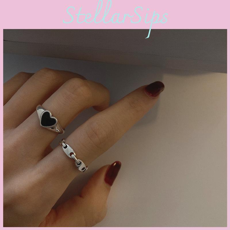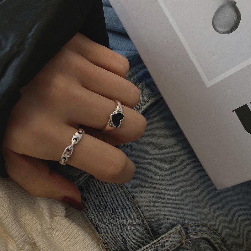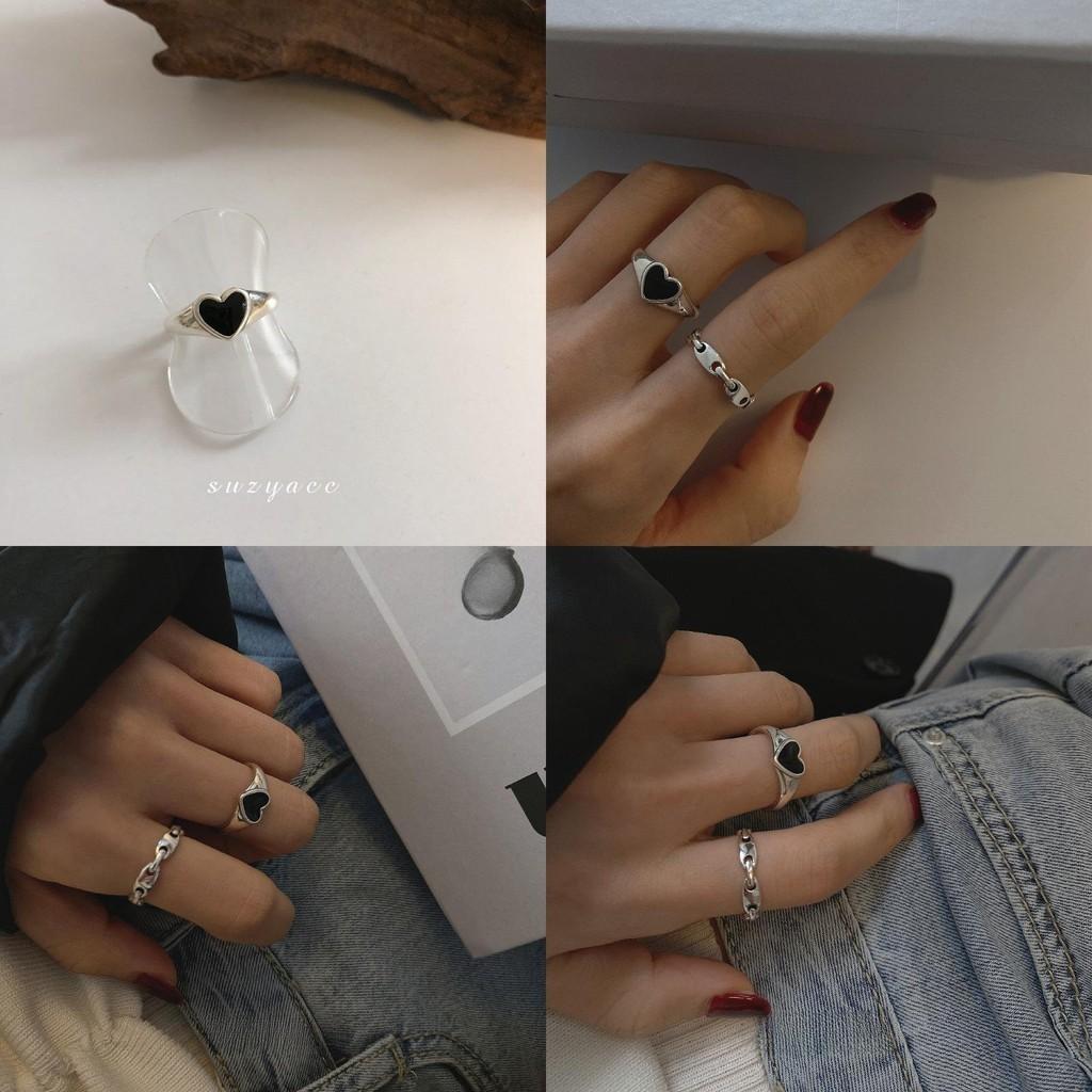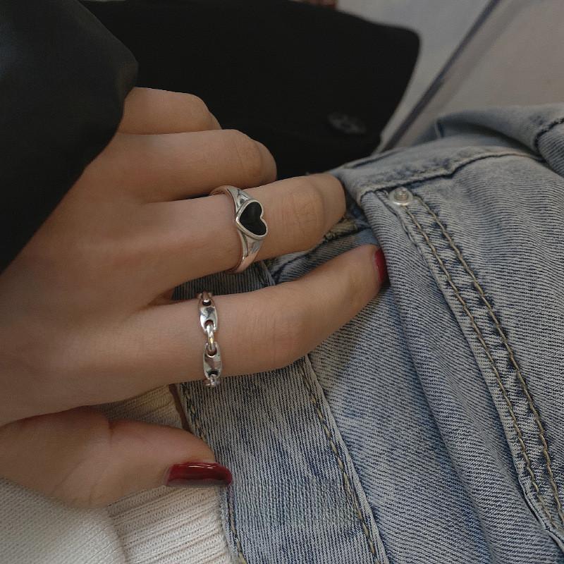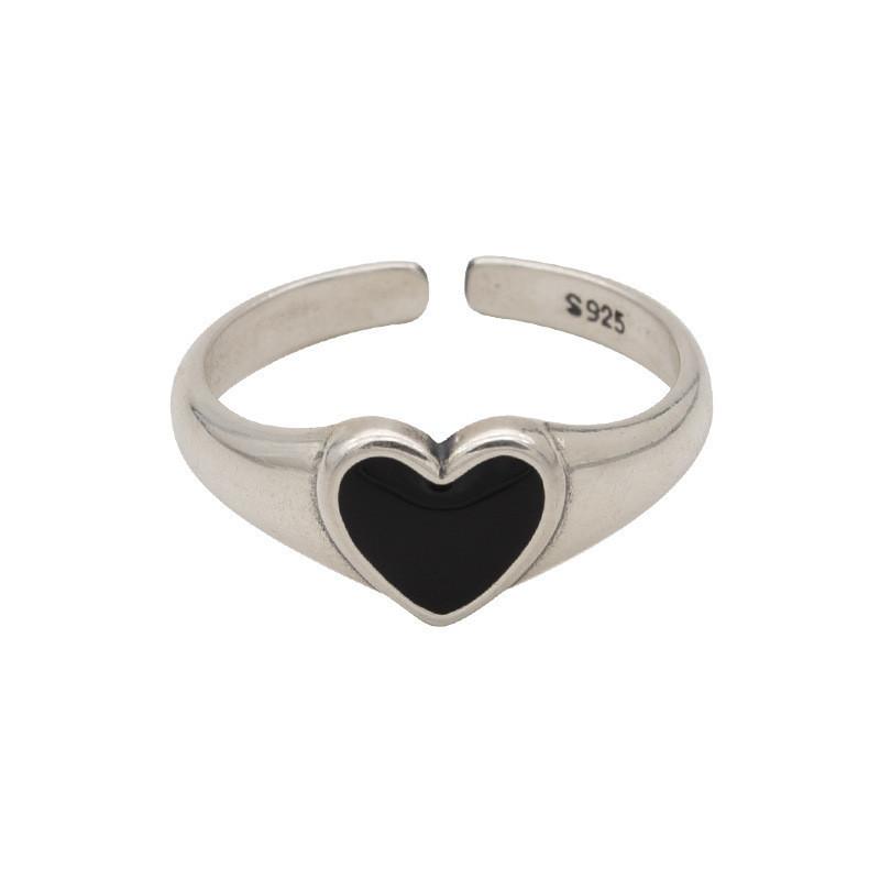 Стильное регулируемое кольцо S925 с черным сердцем для женщин, модное минималистичное ювелирное изделие, подарок