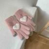 Корейское сердце любви розовые перчатки женские плюшевые перчатки осенне-зимние толстые варежки перчатки с полным пальцем для девочек теплые перчатки с сенсорным экраном