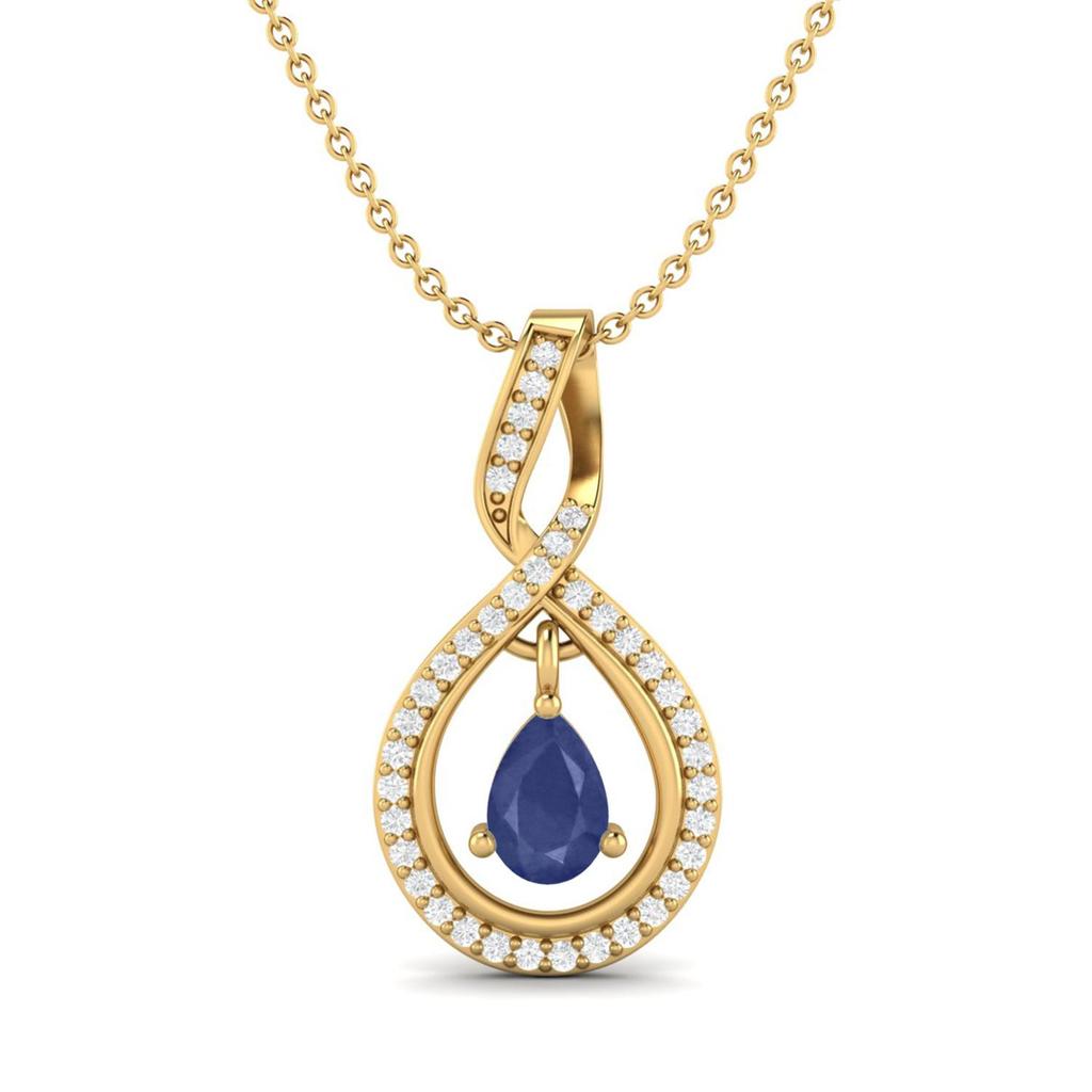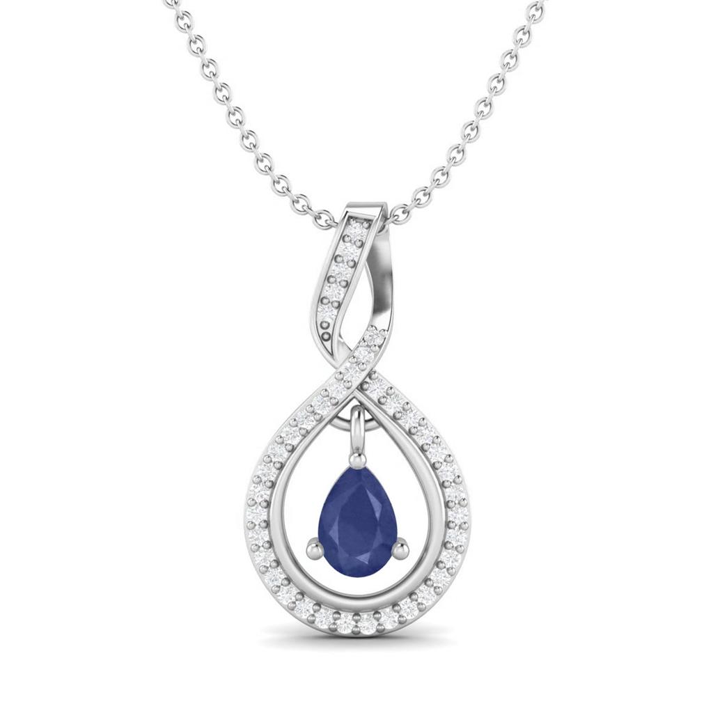 Elegant infinity pendant in 925 sterling silver featuring a 1.16 Ct pear-cut blue sapphire and shimmering accents. A timeless symbol of love and grace.