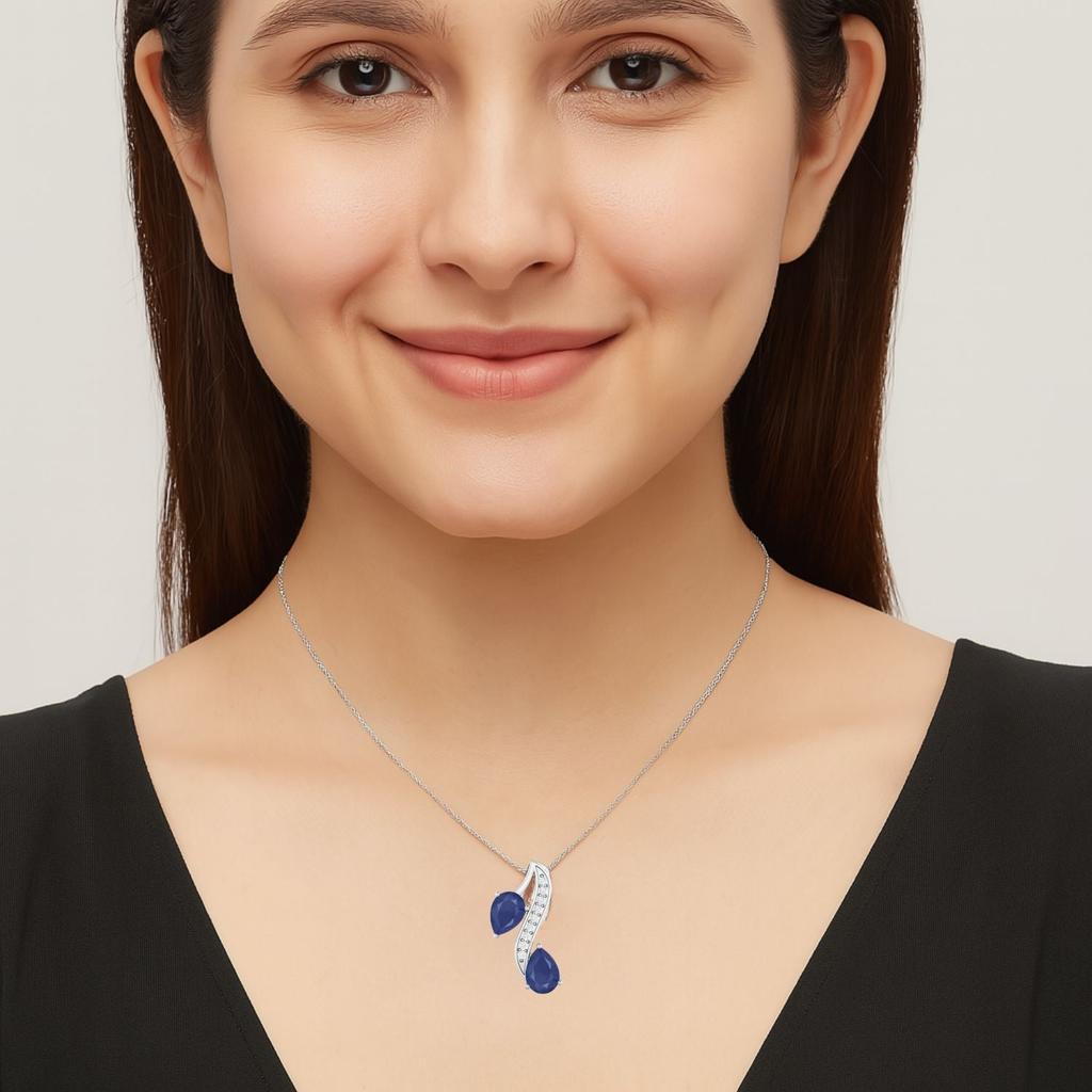 Подвеска из стерлингового серебра с синими сапфирами 0,93 карата в дизайне двойной спирали в форме груши. Элегантное ожерелье с драгоценными камнями, идеально подходящее для любого случая.