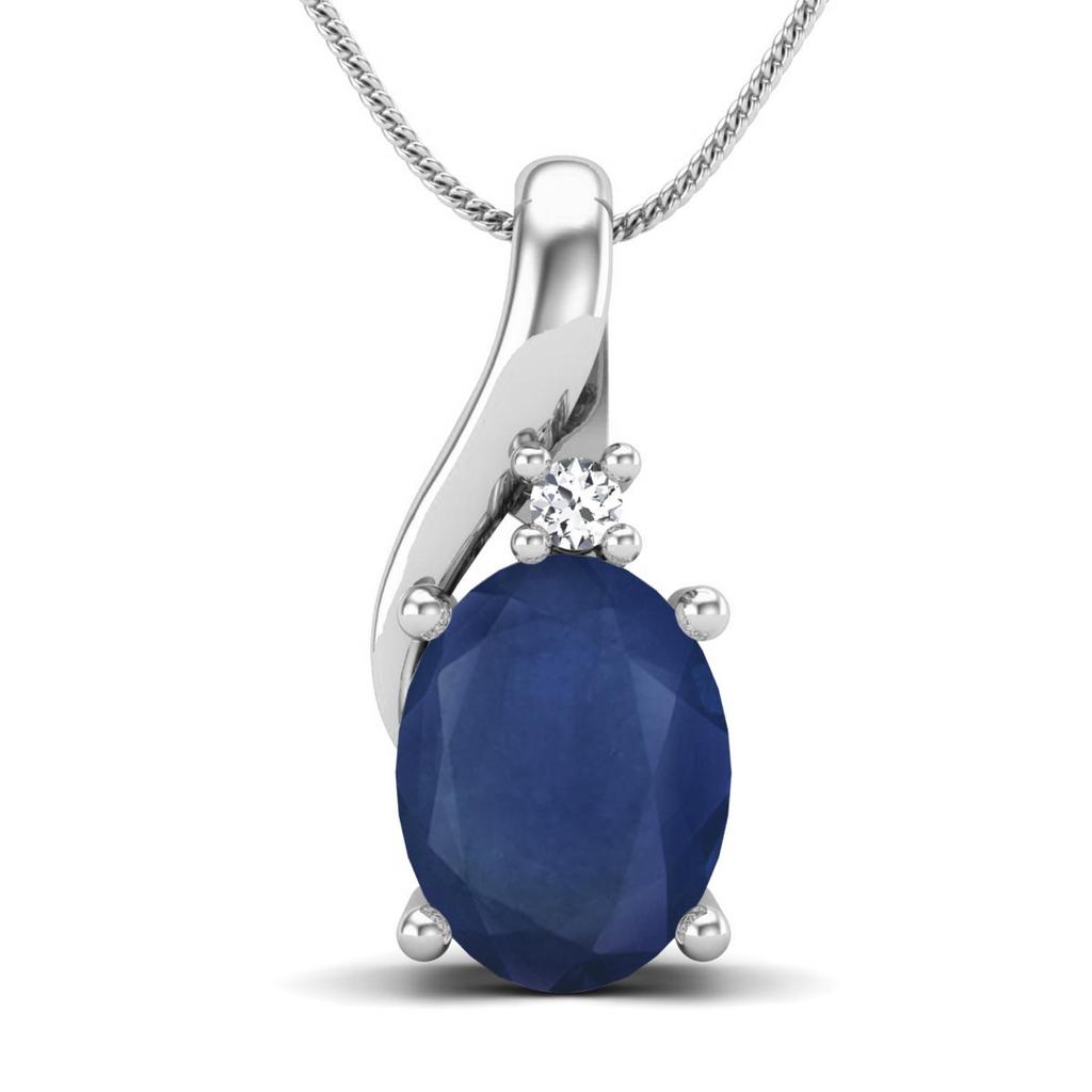 925 Sterling Silver Oval Blue Sapphire Pendant – 1.52 Ct with Accent Stone