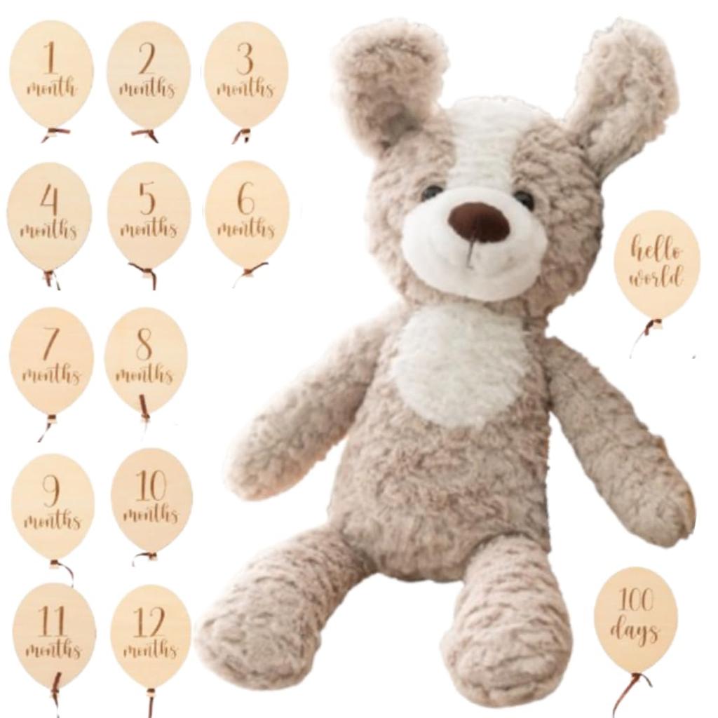 MIHI Плюшевая Деревянная Ежемесячная Карточка (Форма воздушного шара) Набор [Аутентичный, Соответствующий Закону о санитарии пищевых продуктов] Животное, Пушистый, Первая игрушка, Баннер с буквами, Ежемесячный