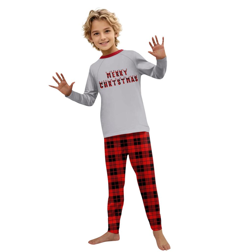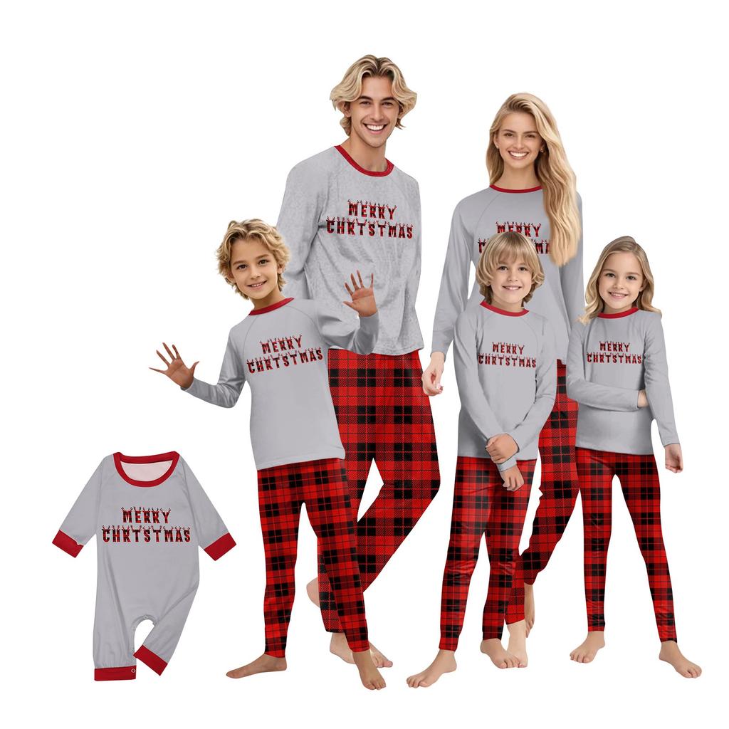 Наряд для родителей и детей - Рождественский принт Круглый вырез Длинный рукав Длинные брюки Костюм для дома