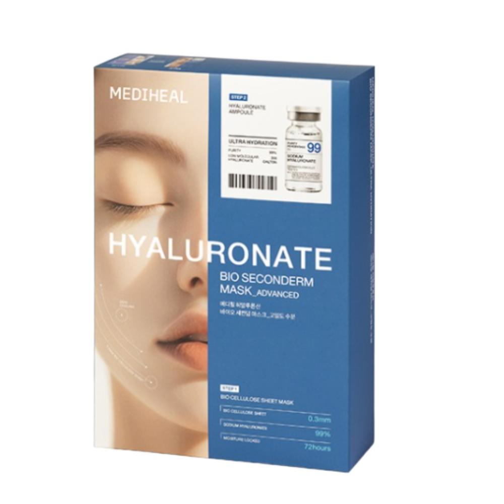 Набор из 10 масок Mediheal Bio Second Derm с гиалуроновой кислотой и высокой плотностью влаги, включая ампулу для интенсивного увлажнения и наполненной, освеженной кожи.
