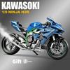 1:9 Kawasaki H2R Ninja спрей H2R литой из сплава модель мотоцикла игрушка транспортное средство с подсветкой внедорожный мотоцикл игрушки машина