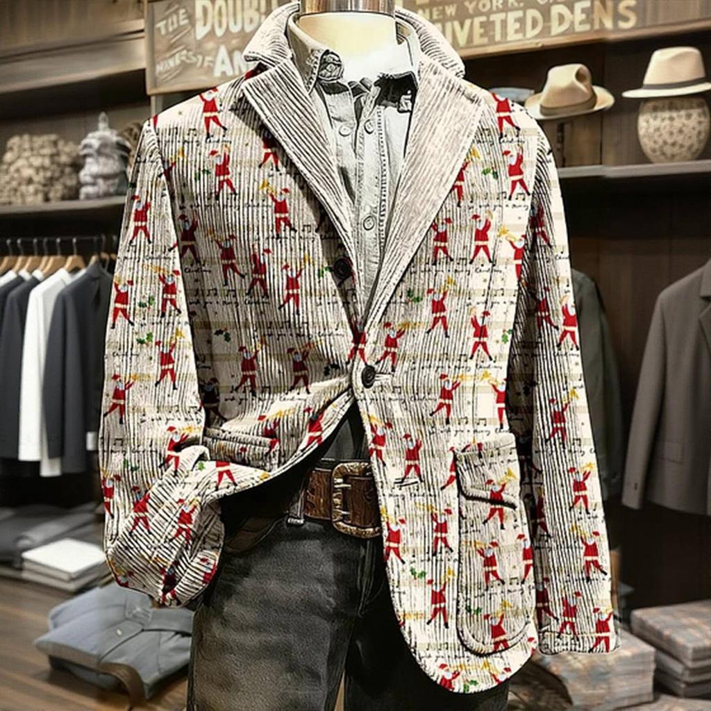 Мужской вельветовый теплый пиджак-кардиган с принтом и карманами, мужской повседневный костюм