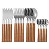 16/24/30Pcs Stainless Steel Imitation Wooden Handle Cutlery Set Silver Dinnerware Knife Spoon Fork Tableware Set