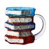 Artistic Stacked Book Design: Featuring a stacked book motif with blue and amber glass sections, this mug appeals especially to literature lovers and collectors. Its artistic design adds character and charm, making each sip feel like a celebration of reading and creativity.