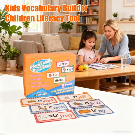 Его дизайн в виде перелистывания страниц позволяет детям переворачивать маленькие карточки, чтобы составлять новые слова, повышая интерактивность и делая обучение увлекательным.. Этот набор, ориентированный на определенные словообразовательные семьи, такие как «-at» и «-op», укрепляет фонематическое осознание и навыки рифмы..