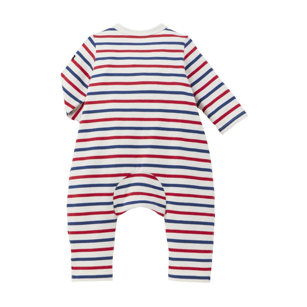 This MIKIHOUSE long-sleeved coverall (long-sleeved romper) is part of the "D-Basic" series, which focuses on high-quality materials and simple designs. It features a black bear on the chest and is made of a slightly thick jersey material. This MIKIHOUSE coverall can be worn throughout the fall, winter, and spring seasons. Its roomy design in the hip area means it won't restrict the movement of active children, and it also has hooks and loops under the crotch, making it convenient for changing clothes and diapers.