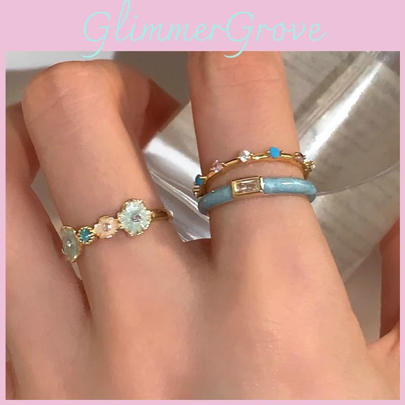 Потрясающее эмалевое кольцо цвета «Ледниковая мята» с уникальным цветочным дизайном для женщин