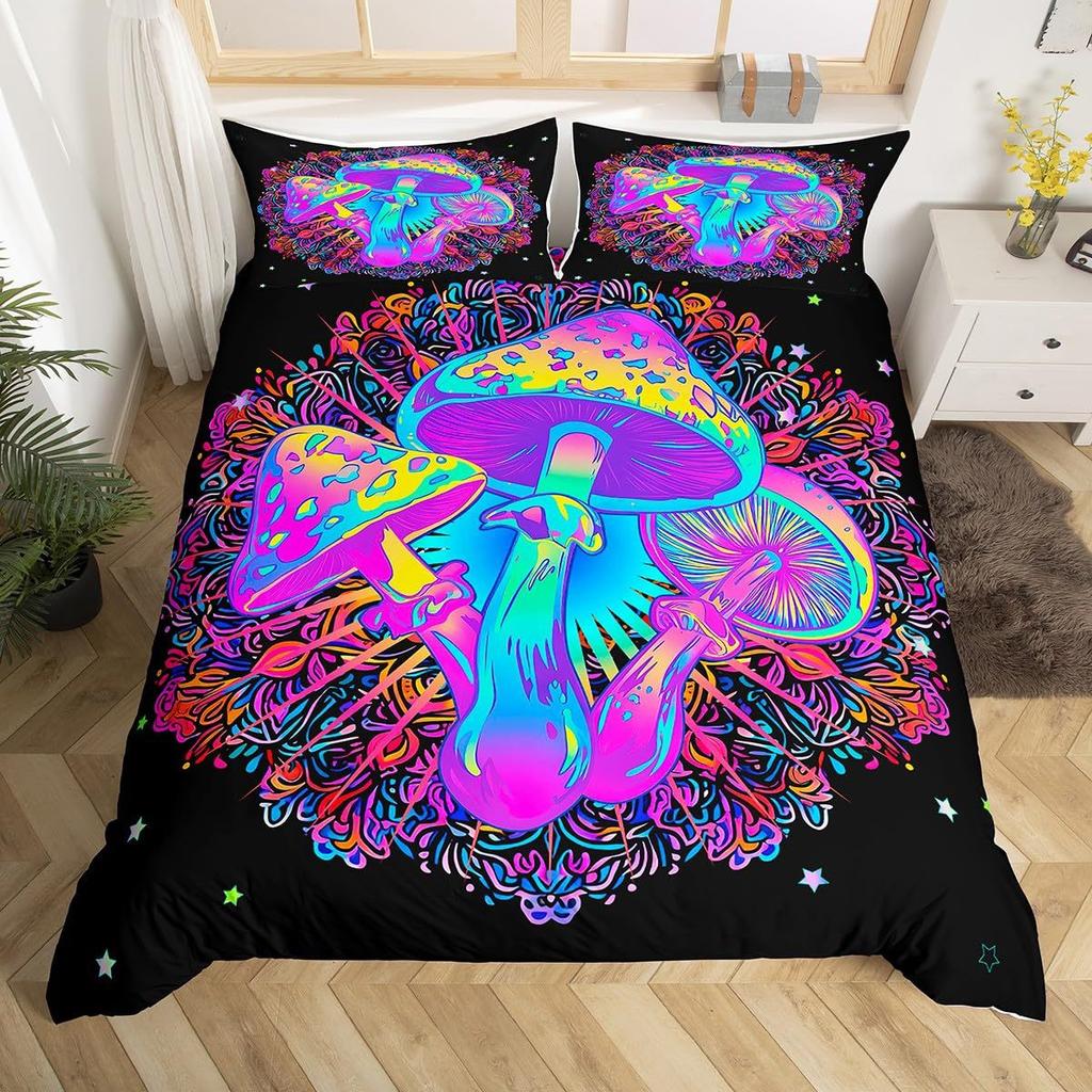 Colored Mushroom Three-Piece Quilt Cover 3D Digital Printing Bedding Set Mandala Bed Cover
