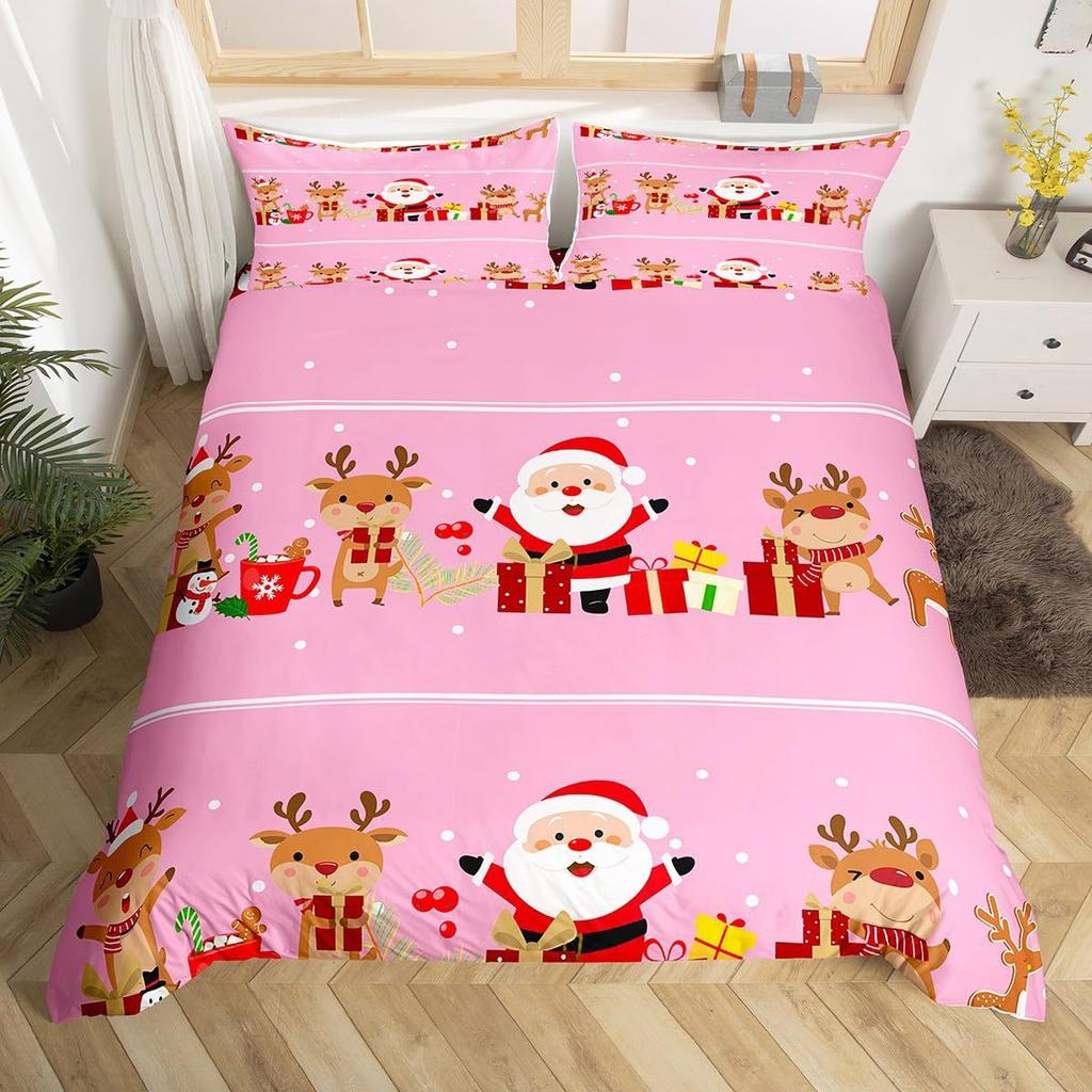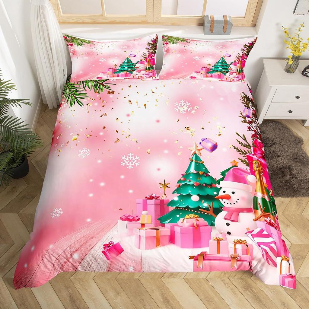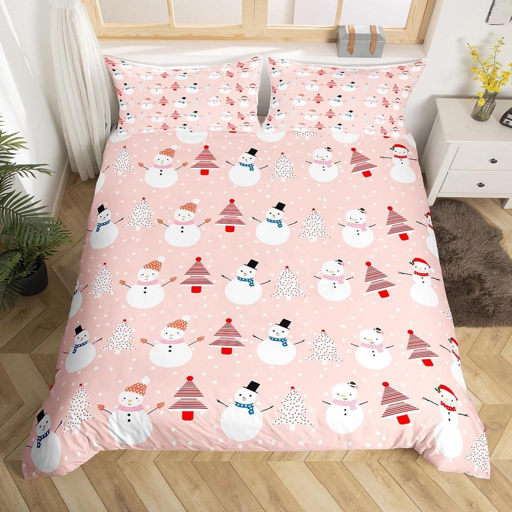 Мультяшный снеговик розовый горошек трехпредметный пододеяльник комплект постельного белья покрывало