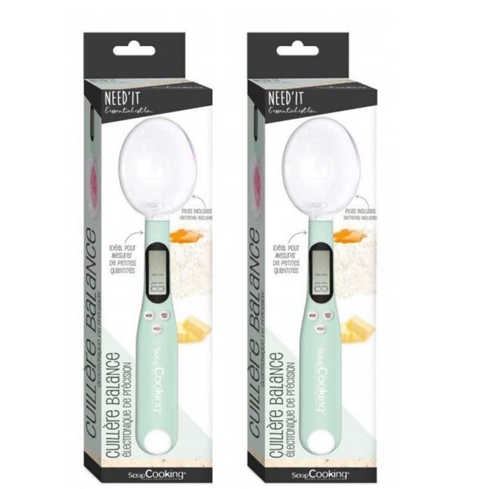 Cuillère balance digitale - SCRAP COOKING - Multicolore - 300 grammes - Fonction tare - 2 pièces