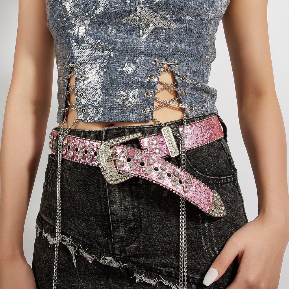 Пояса из искусственной кожи со стразами Y2K Пояс на талию Ретро Блестящий пояс Декоративные Джинсы