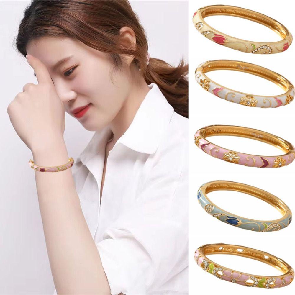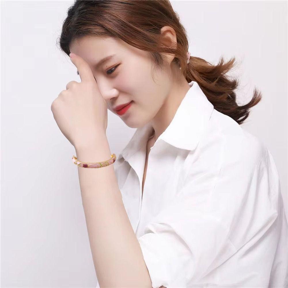 Эмаль Винтажный Клуазоне Браслет в китайском стиле Женский браслет на руку Ажурный браслет с цветком Женский