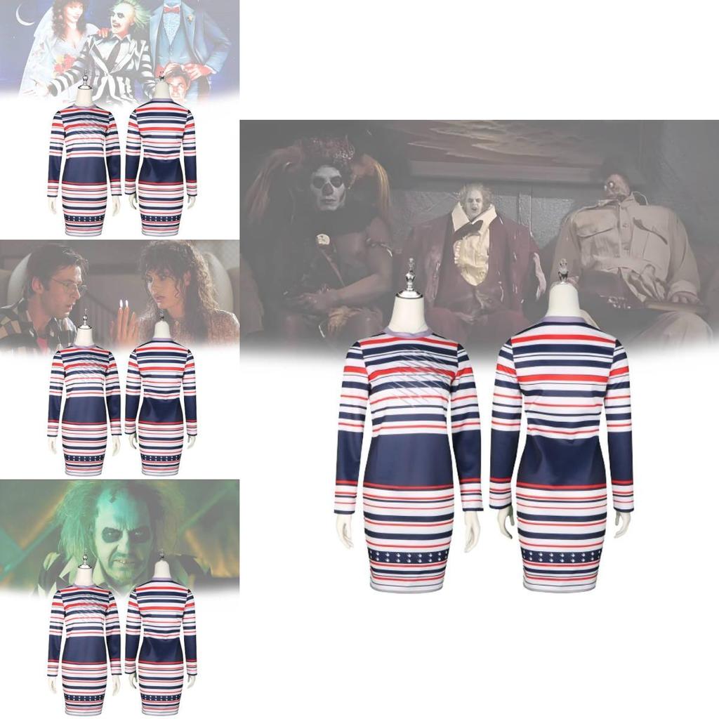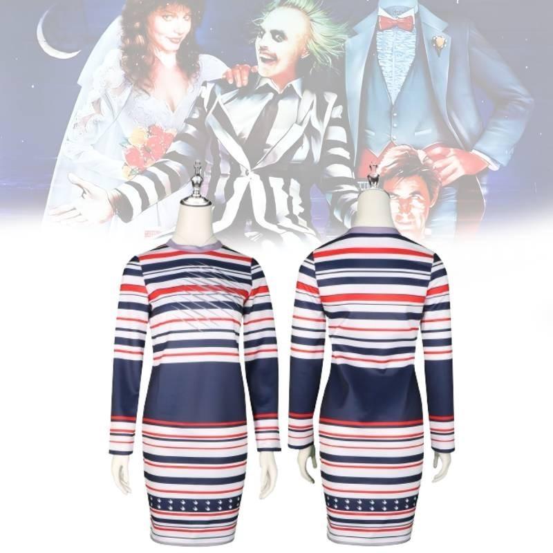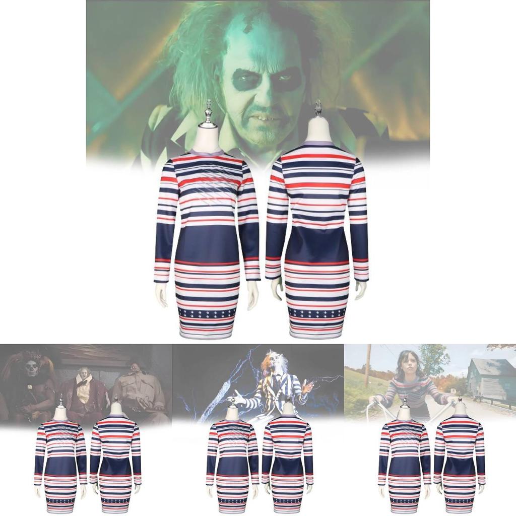 Костюм для косплея Битлджуса, полосатое платье Астрид для ролевых игр на Хэллоуин