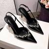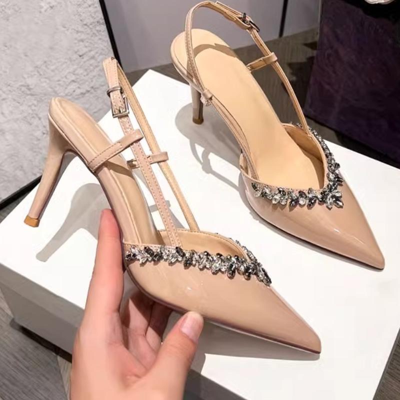 Мода Ся Новая Мода Острый Носок Мелкий Вырез Высокие Каблуки Женские Шпильки Лакированная Кожа Стразы Темперамент Одиночные Туфли