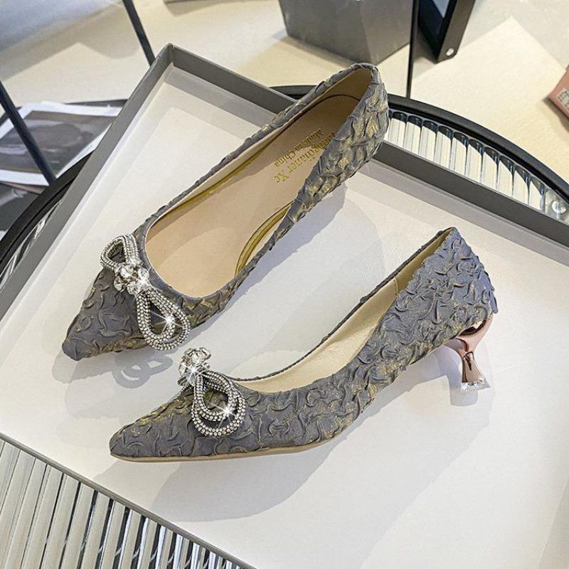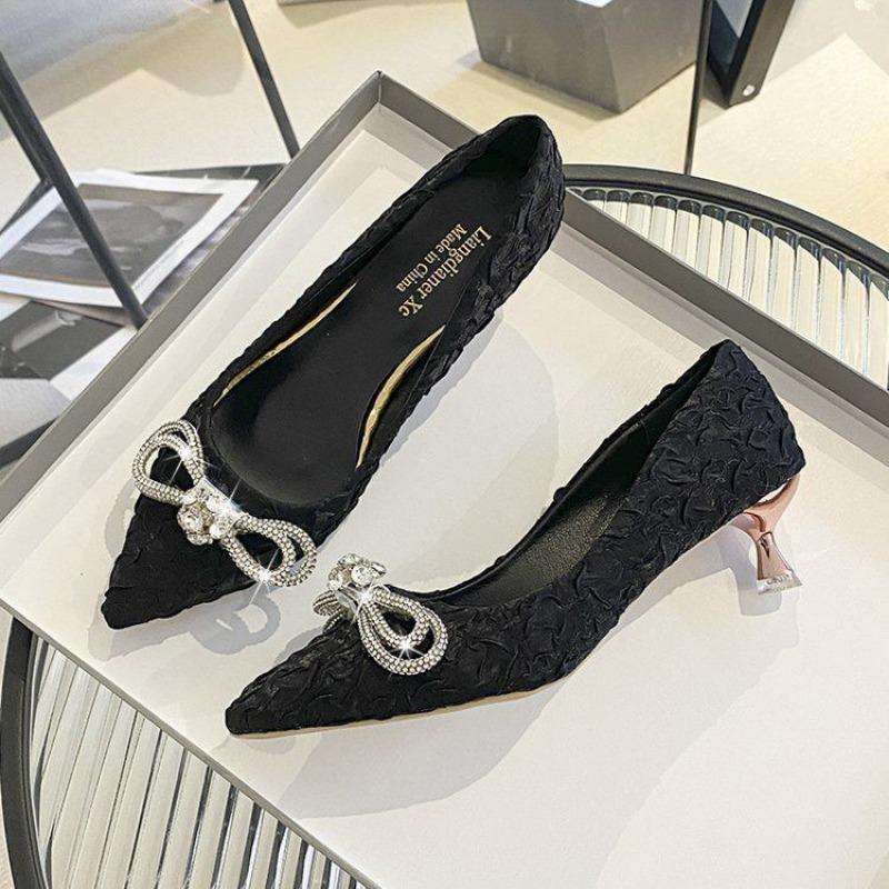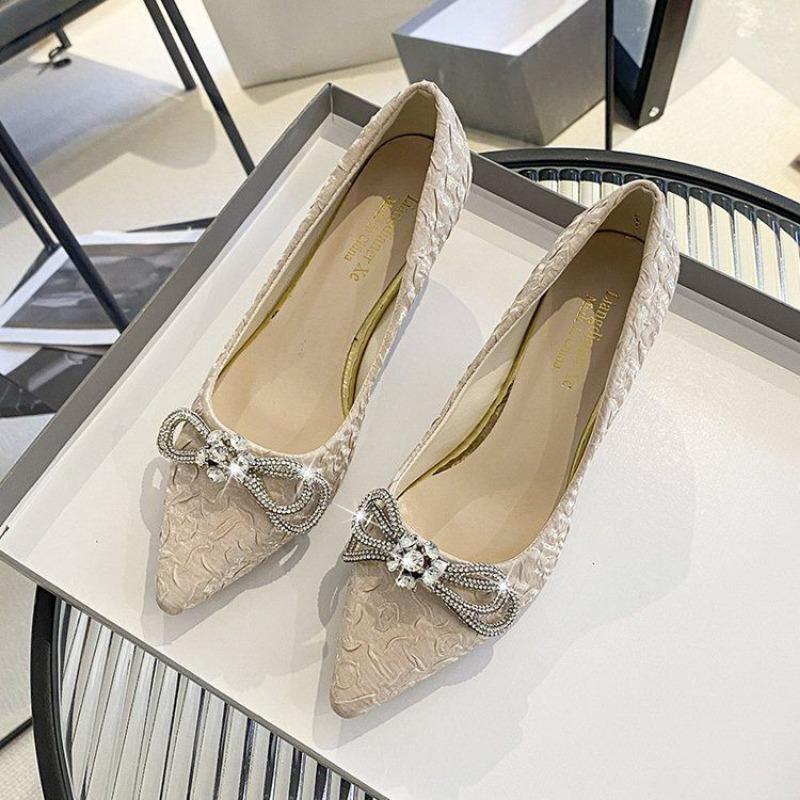 Модные женские туфли-лодочки со стразами, с острым носком и средним каблуком, обувь для женщин в корейском стиле, удобные и элегантные, Y2k, свадебная обувь для невесты