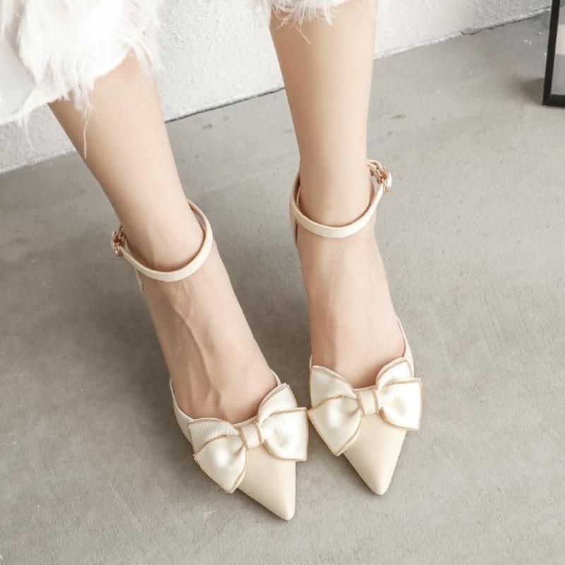Мода 2025 Новые летние туфли-лодочки для подружки невесты, темпераментные туфли на высоком каблуке со сладким бантом, сандалии с бантом на пучке, универсальные туфли-лодочки