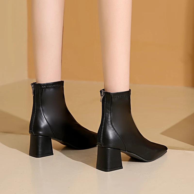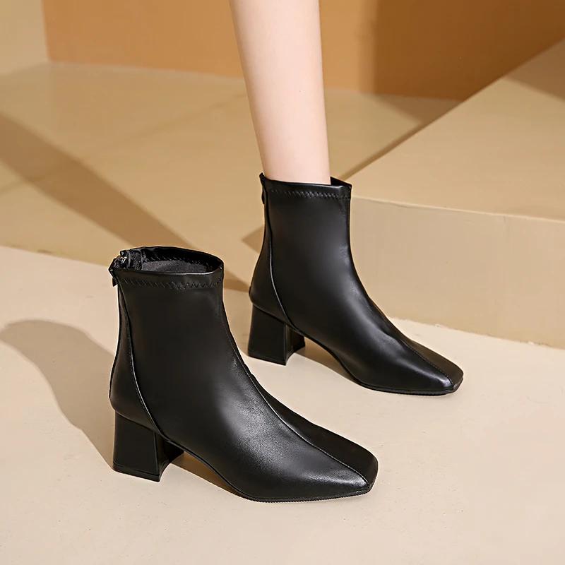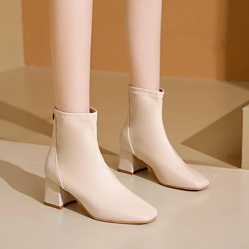 Модная обувь женская 2024 больших размеров современные женские ботинки элегантные ботильоны женские шитье квадратный носок задняя молния высокий каблук обувь женская