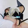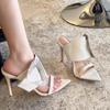 Модные туфли-лодочки на высоком каблуке с хрустальной пряжкой высшего качества, летние, сексуальные, с острым носком, на тонком каблуке, сандалии-слайды, элегантные, с открытым носком, свадебные туфли для невесты
