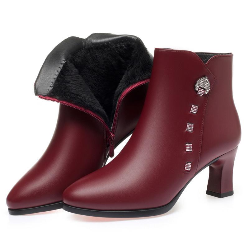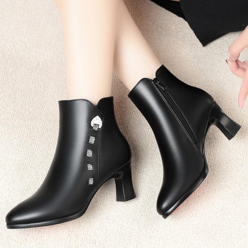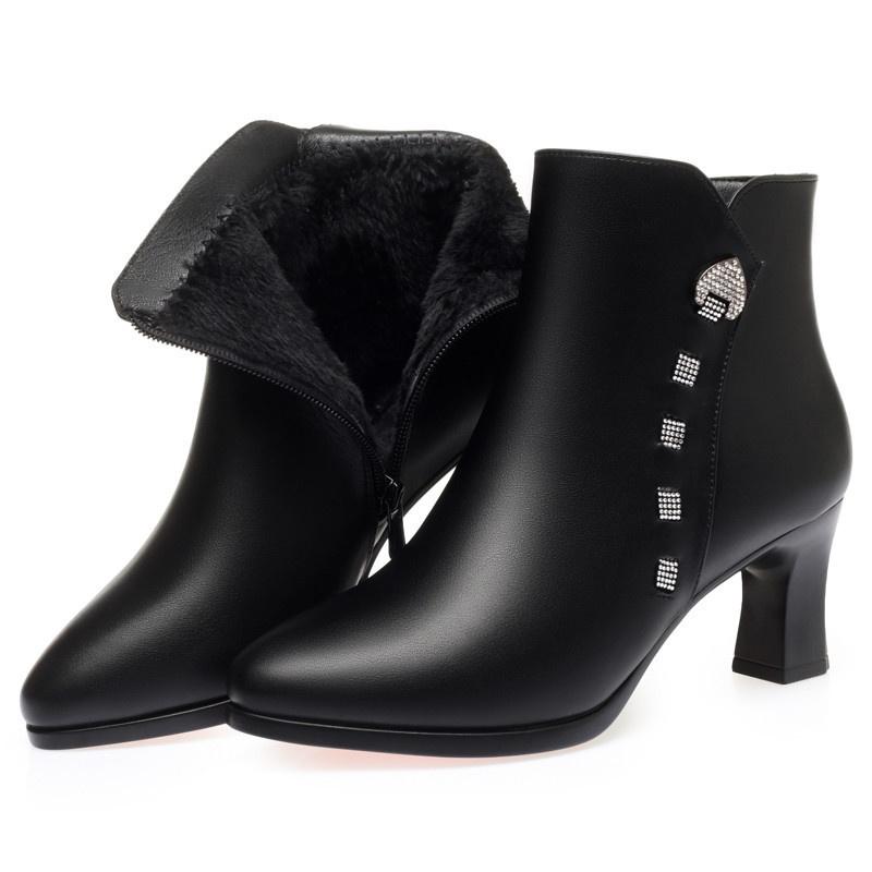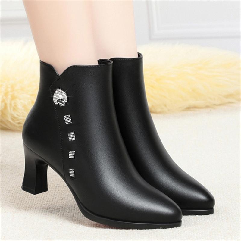 Модные новые осенне-зимние мягкие кожаные туфли со стразами из хлопка, женские модные элегантные удобные сапоги с острым носком на высоком каблуке