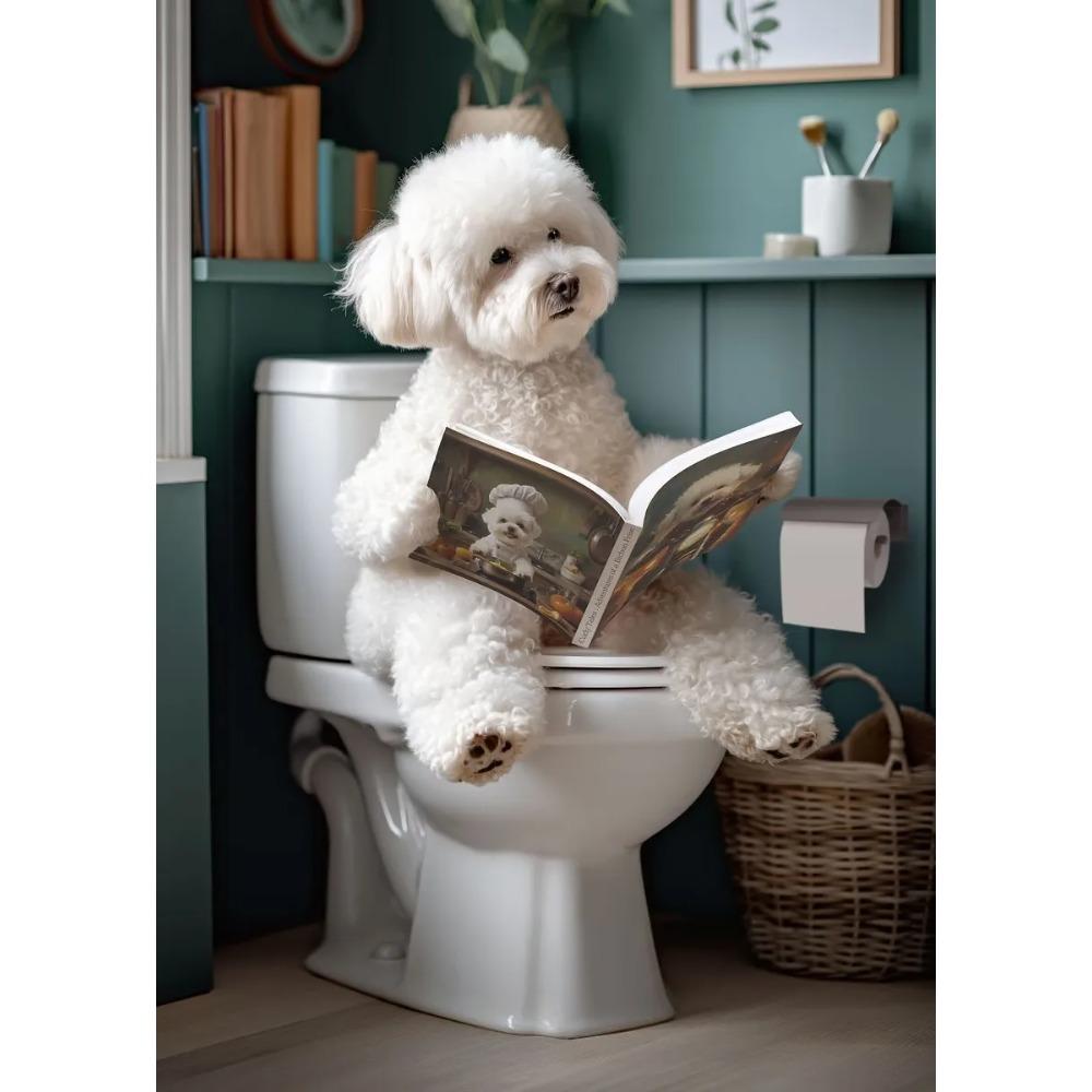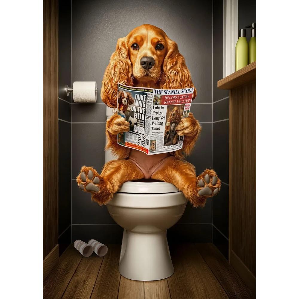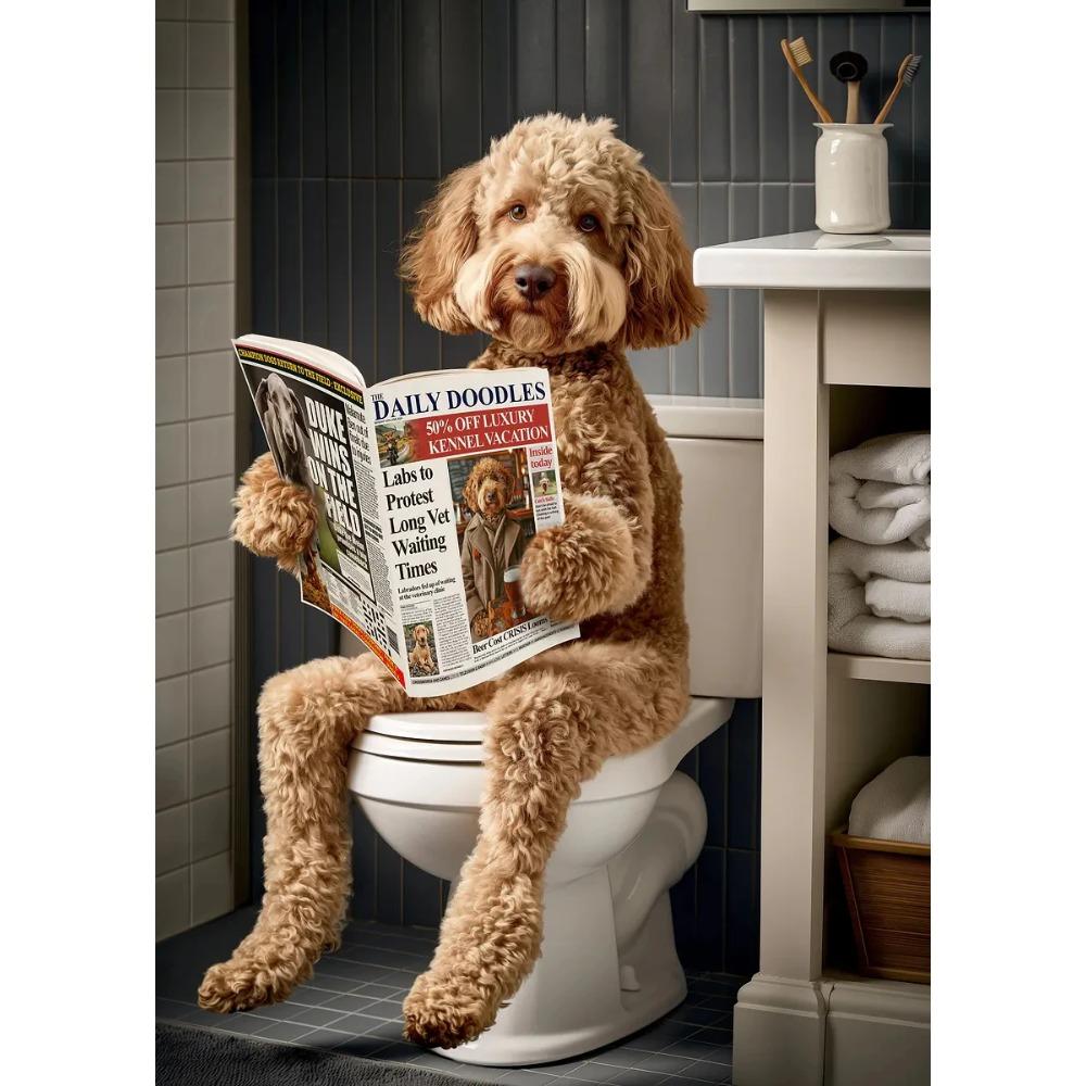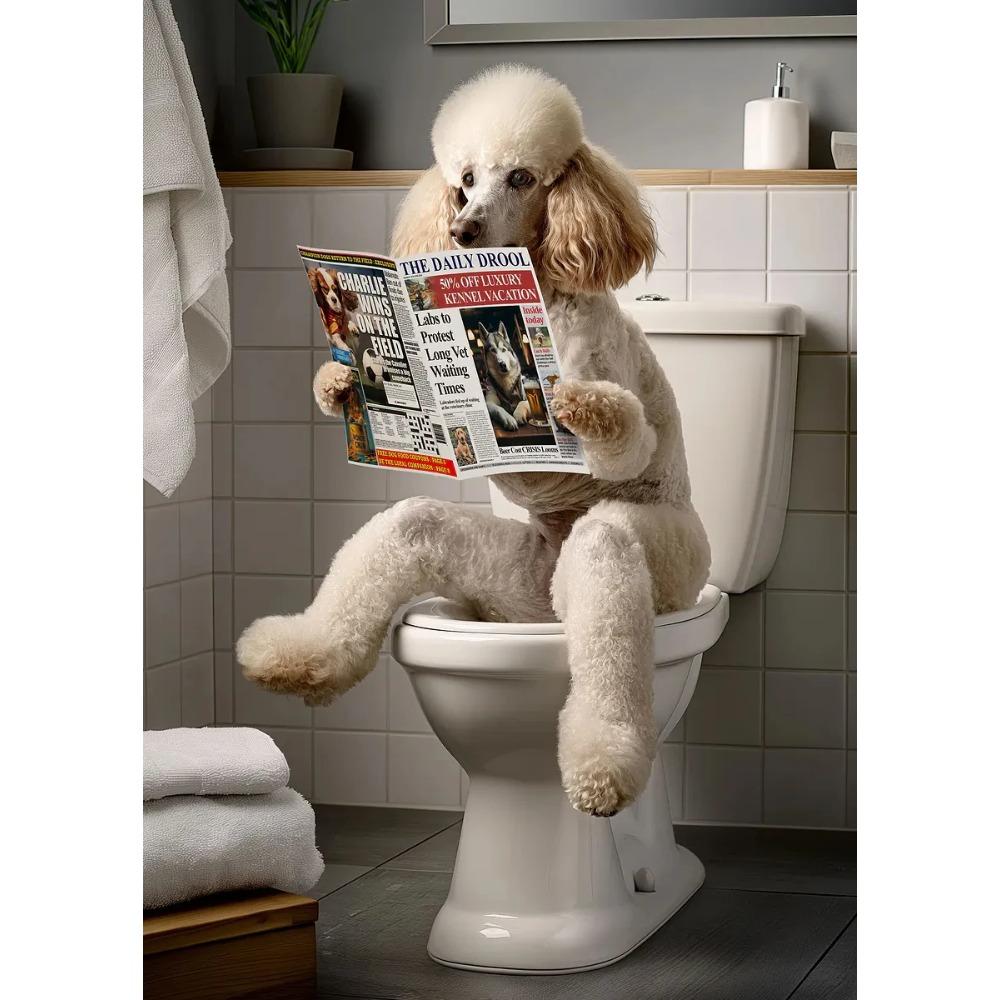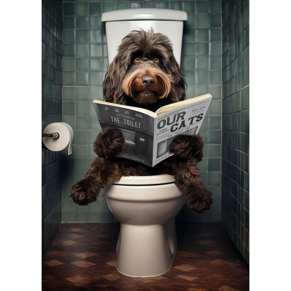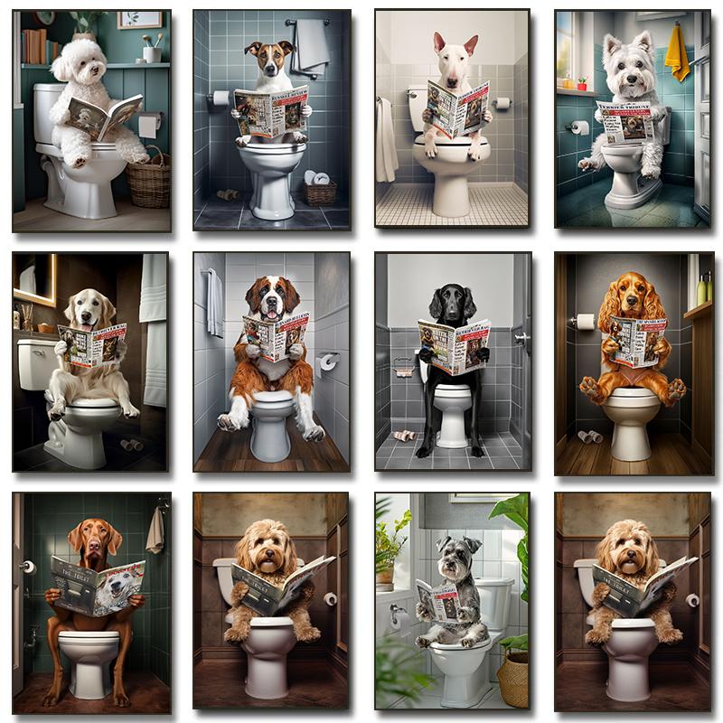 Смешной постер для ванной комнаты Собака читает газету в туалете Принты Подарок владельцу питомца Холст Живопись Настенное искусство Картина Домашний декор для ванной комнаты