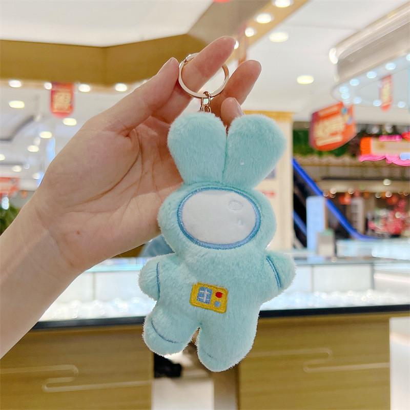Очаровательный и пушистый брелок Космический кролик белого и синего цвета для стильных рюкзаков