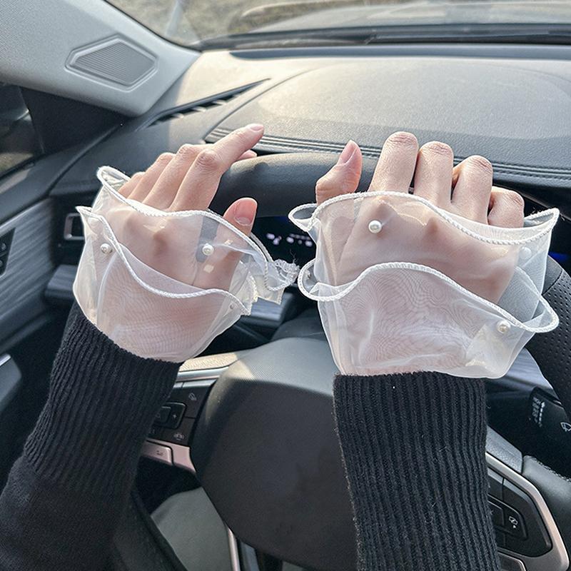 1 пара Тюлевые перчатки для фотосессии нейл-арта с плиссированными манжетами, реквизит для маникюра и фотографии, рукава для демонстрации типсов, модные аксессуары