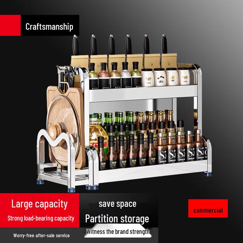 2-Tier Stainless Steel Kitchen Countertop Organizer with Knife & Cutting Board Holder