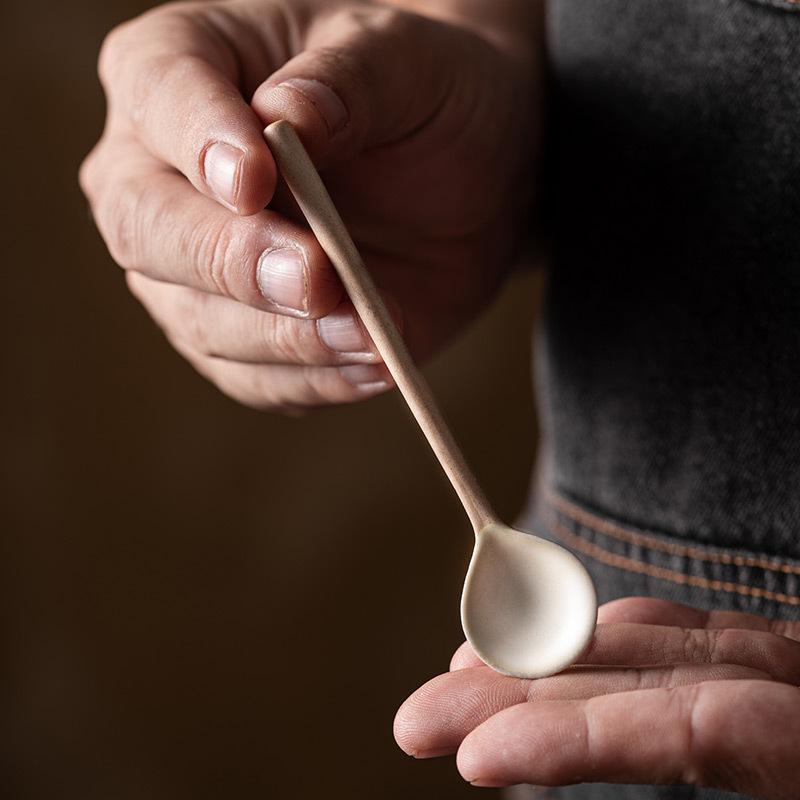 Ложки для сахара с длинной ручкой Керамическая ложка для приправ Бытовые кухонные десертные ложки Ложка для перемешивания кофе Кофейная посуда Столовая посуда