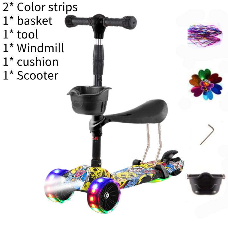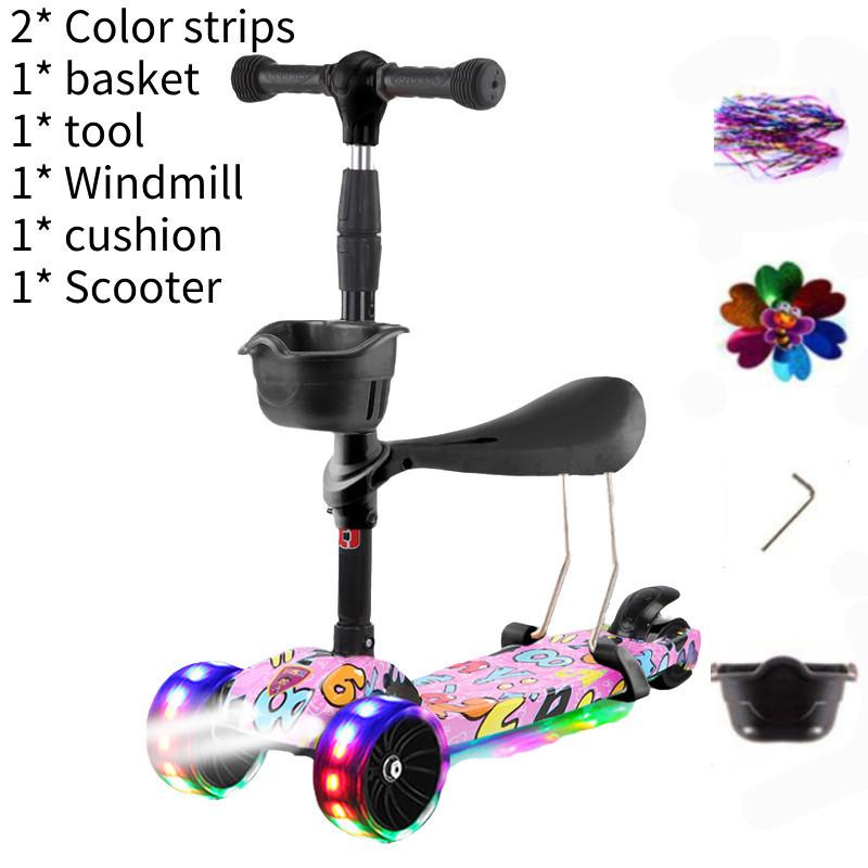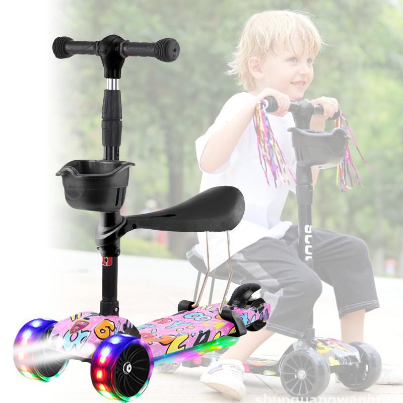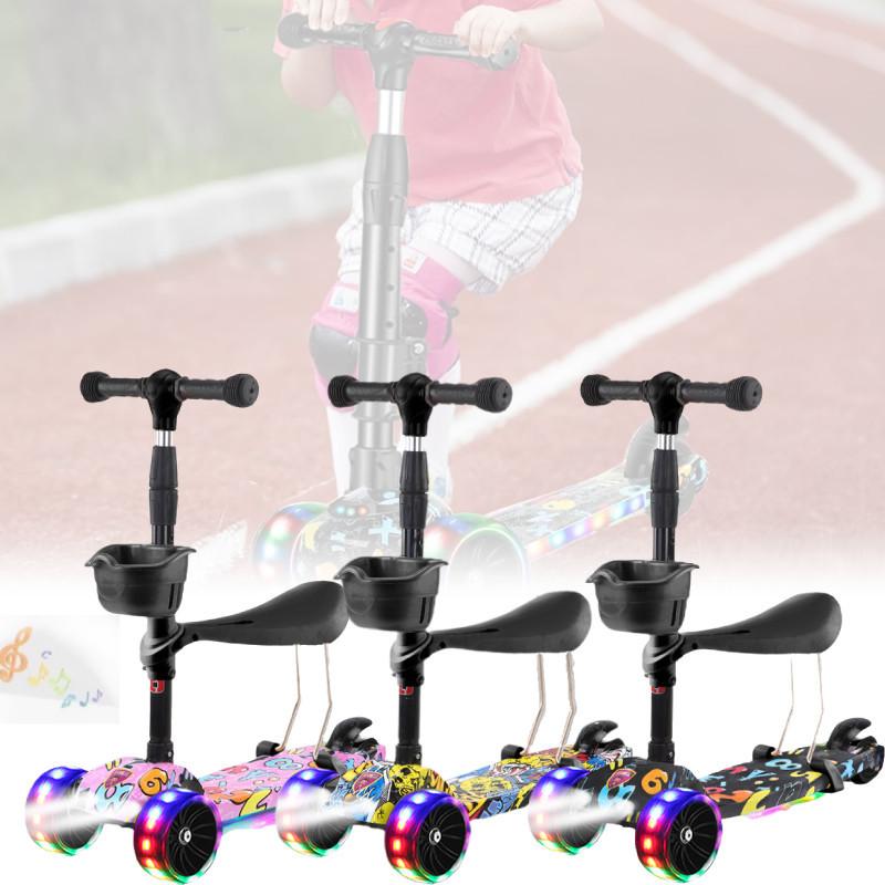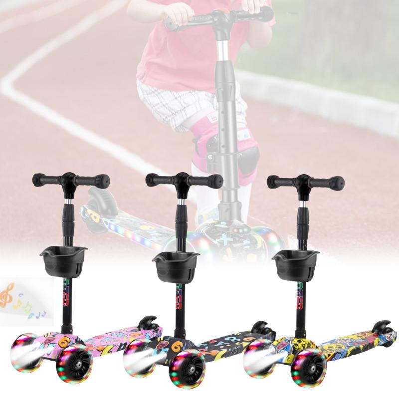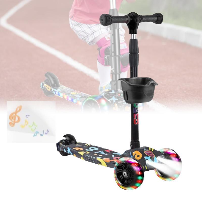 Универсальный детский трехколесный самокат с музыкой и светящимися колесами для веселых поездок