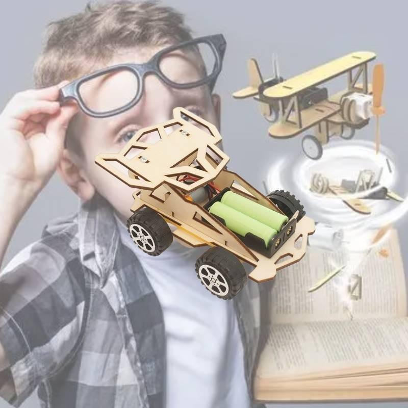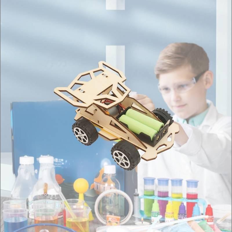 Деревянная полноприводная гоночная машина, которую можно собрать самому, обучающая игрушка для детей, STEM-образование
