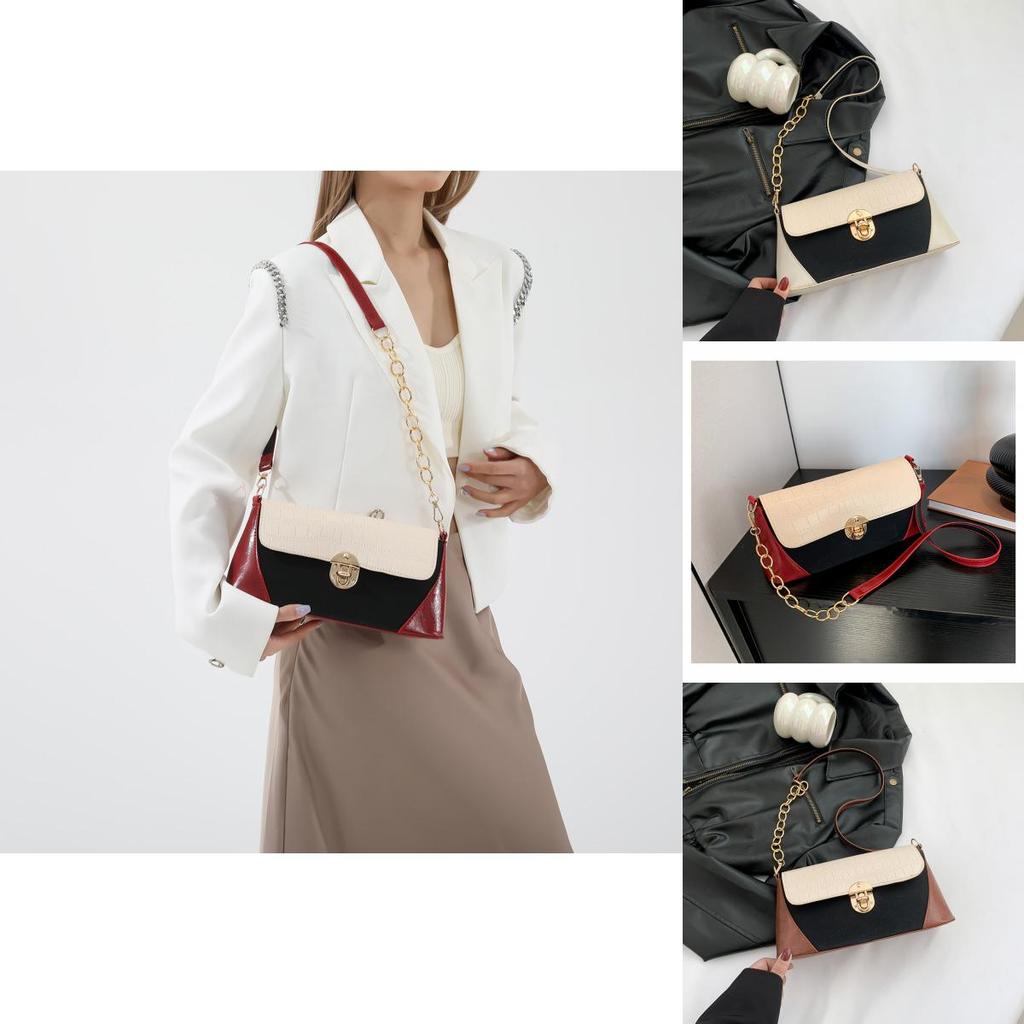 Retro Color Block Shoulder Bag 2024 New Trend Street Style Pu Material Medium Size