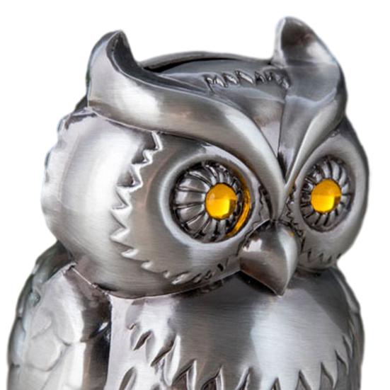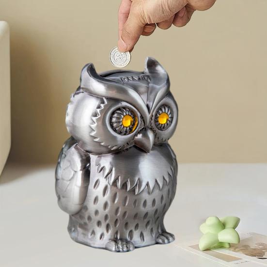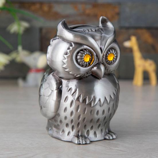 Уникальный дизайн в форме совы: Эта копилка имеет изысканную форму совы, сочетающую функциональность с очаровательной эстетикой.. Его детальная проработка делает его идеальным декоративным элементом для любого стола или полки, добавляя нотку причудливости и элегантности вашему дому или офисному пространству.
