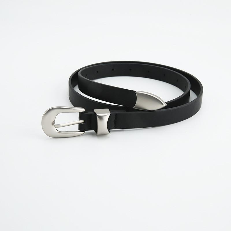 Винтажный женский ремень Повседневный простой ремень на талию из тонкой искусственной кожи с пряжкой-булавкой из сплава Черный В наличии