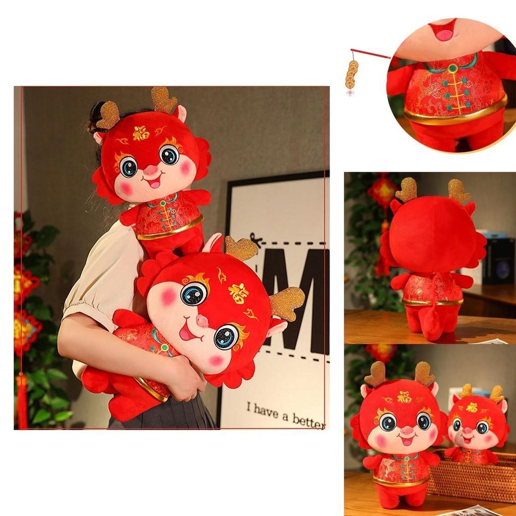 2024 Год Дракона Счастливый Талисман Плюшевая Кукла Красный 20см 26см 32см 38см 48см 60см
