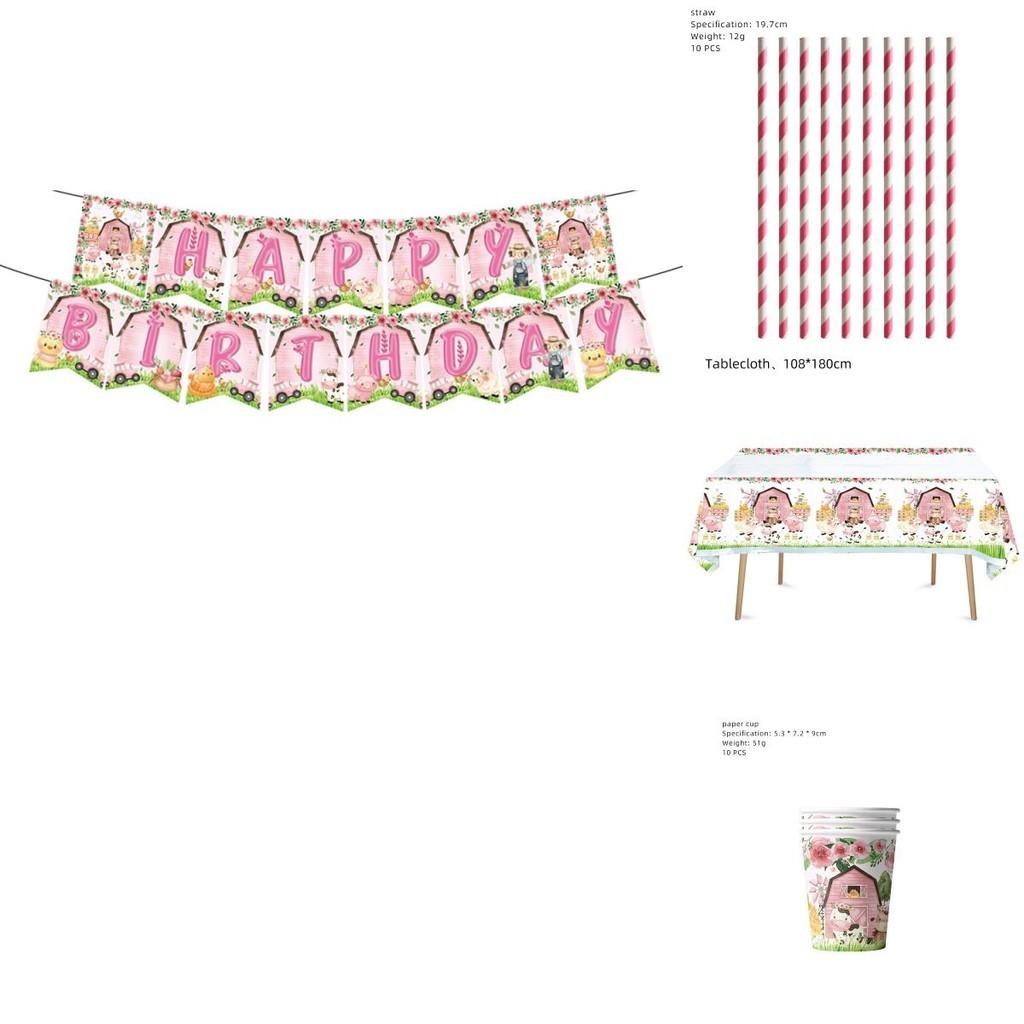 Новые украшения для вечеринки в честь дня рождения питомца в стиле фермы, пластиковые и бумажные принадлежности