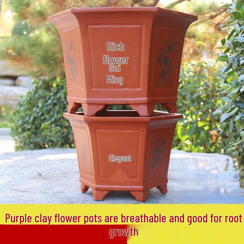 MaidiDuo Thickened Ceramic Zisha Hexagonal Bonsai Pot