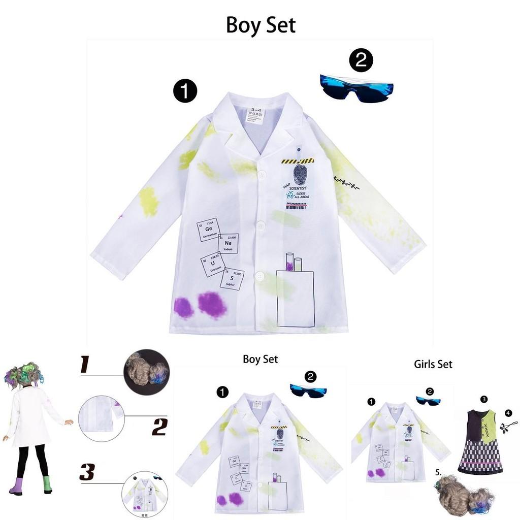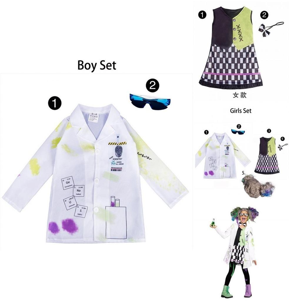 Костюм Безумного Ученого на Хэллоуин для детей Высококачественный косплей-набор для мальчиков и девочек