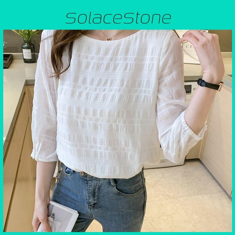 Элегантная блузка в корейском стиле для весны и лета с рукавами семь восьмых для универсальной носки